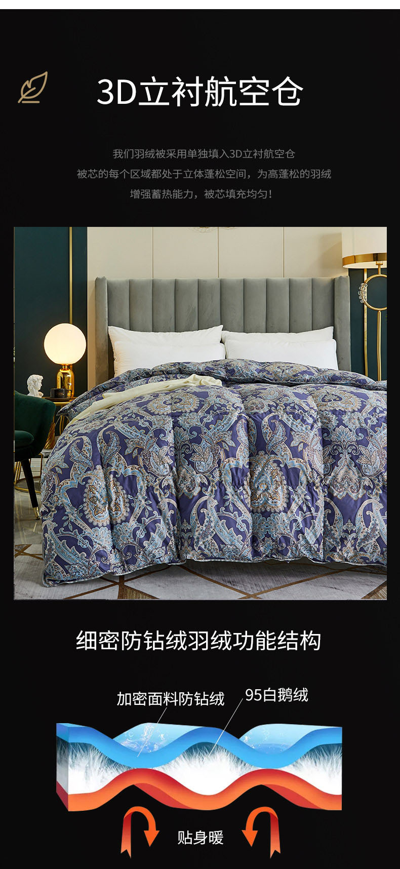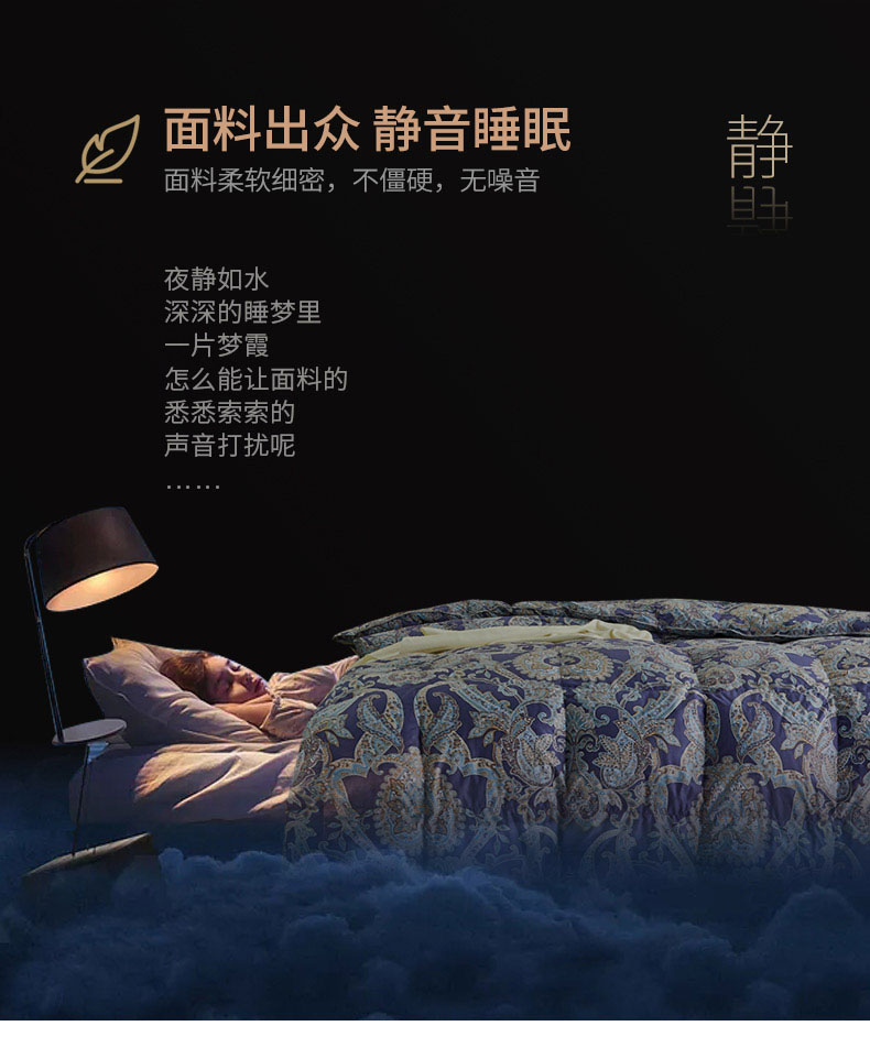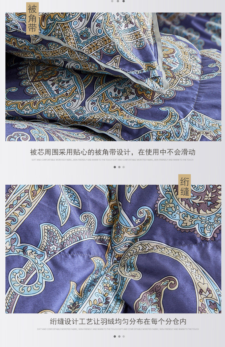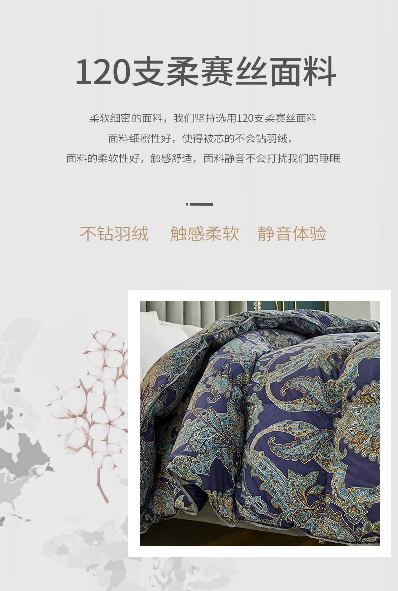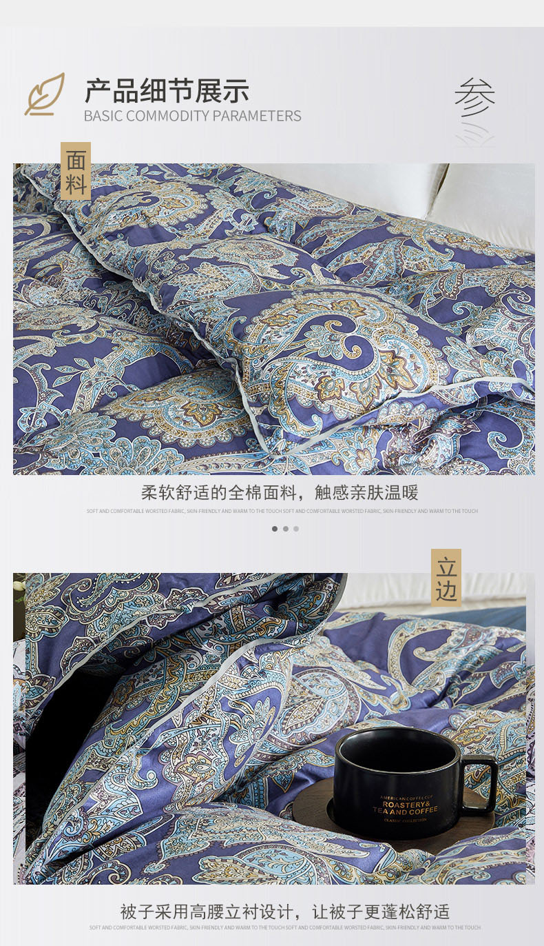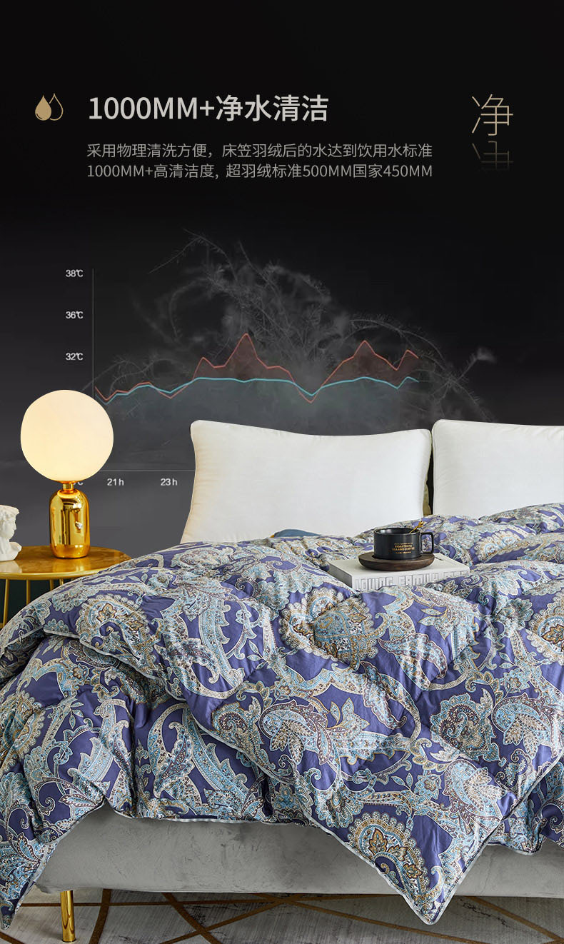 商品名称:绒研羽绒 2025新款60支柔赛丝印花羽绒被冬被 黛妮雅宝蓝