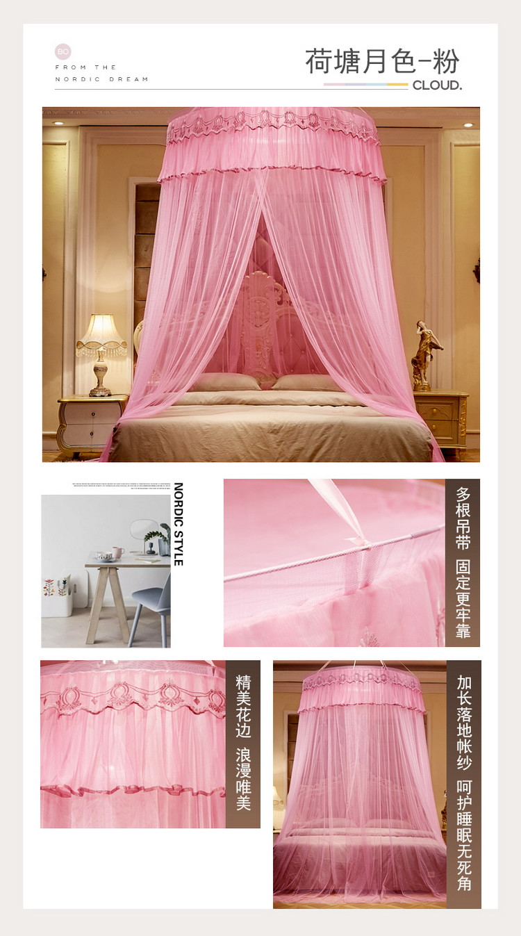 (总)博诺蚊帐 2021新款圆顶蚊帐穗穗幽心,粉,米黄,水绿,紫