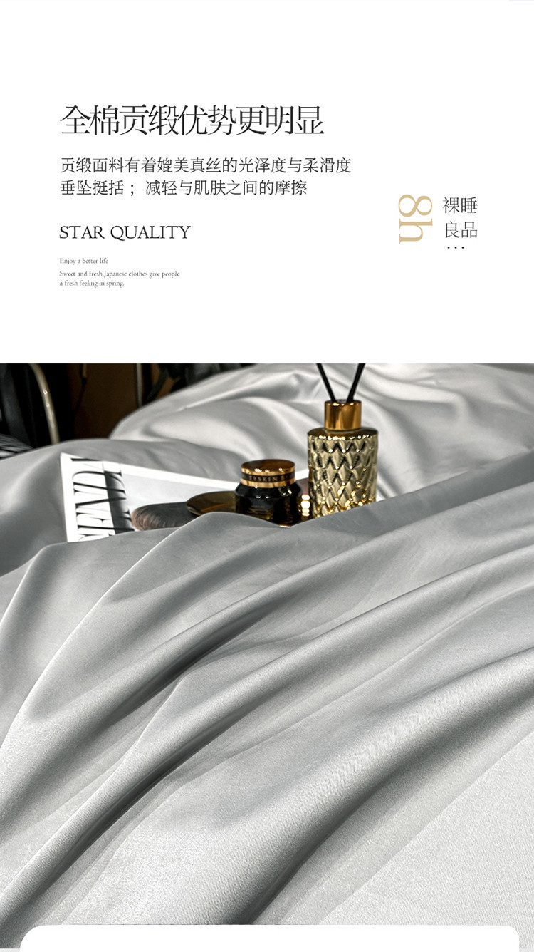 商品名称:蓝米卡夫新款高档酒店款全棉贡缎长绒棉刺绣四件套卡夫银灰+香槟