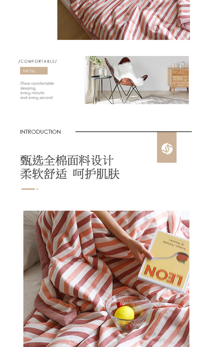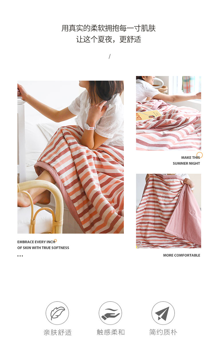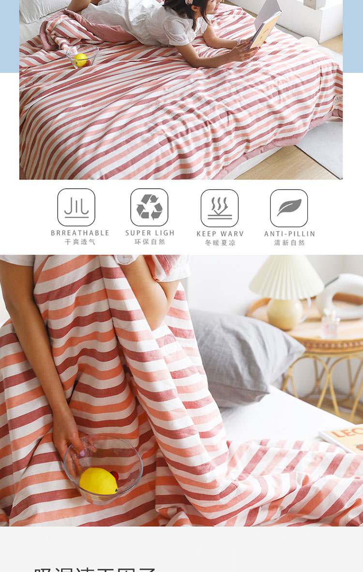 薇玛仕2023新款全棉水洗色织夏凉被空调被 粉玉条