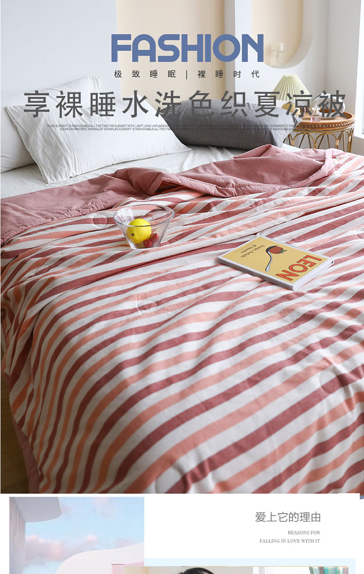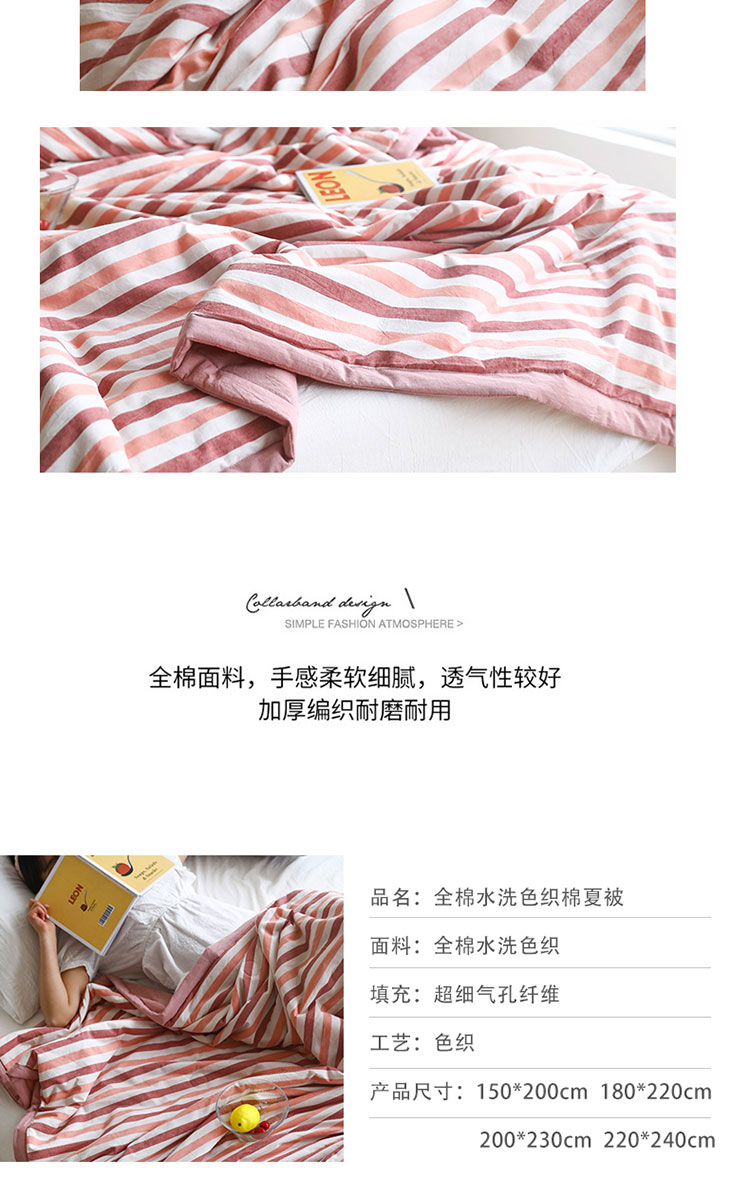 商品名称:薇玛仕2023新款全棉水洗色织夏凉被空调被 粉玉条