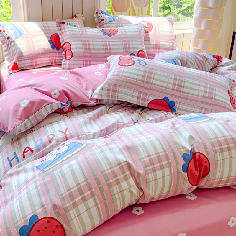佑佳家纺 2024新款磨毛印花植物羊绒单被套 草莓兔,草莓兔