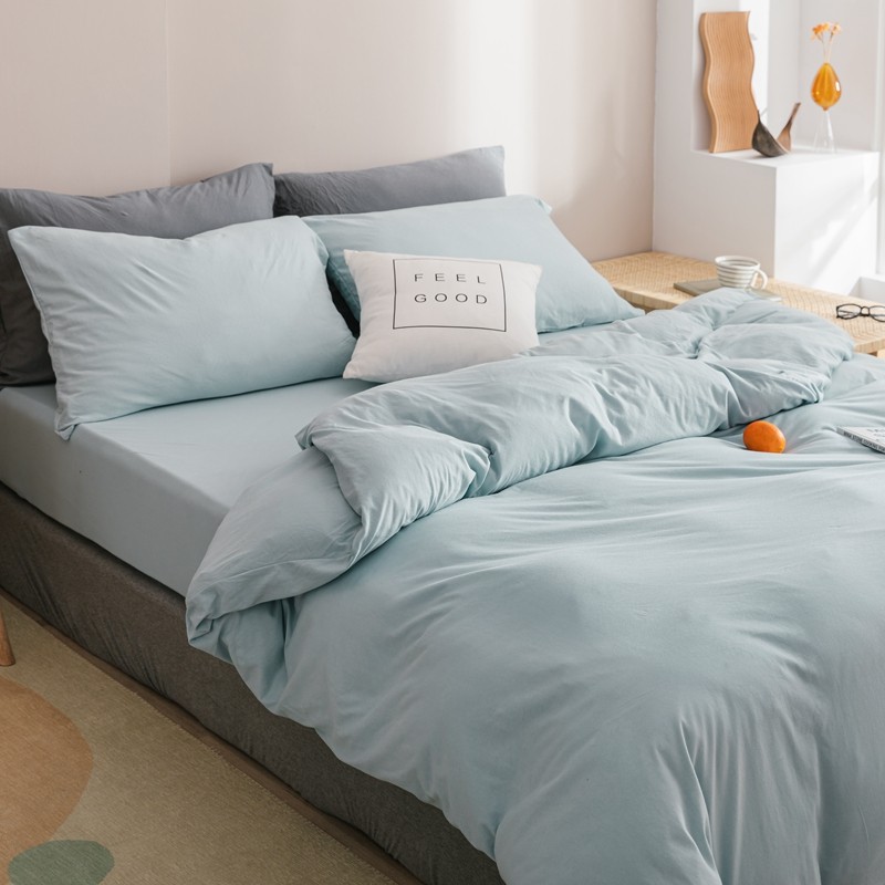 简煦 2025新款针织印染纯色四件套 印-浅蓝