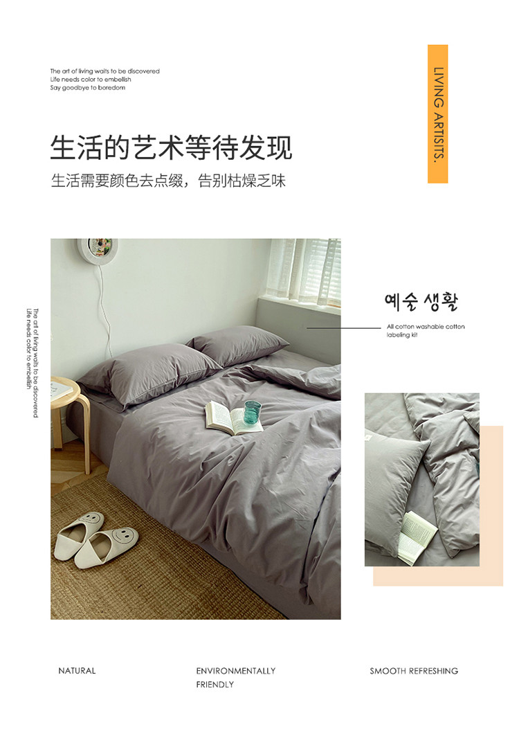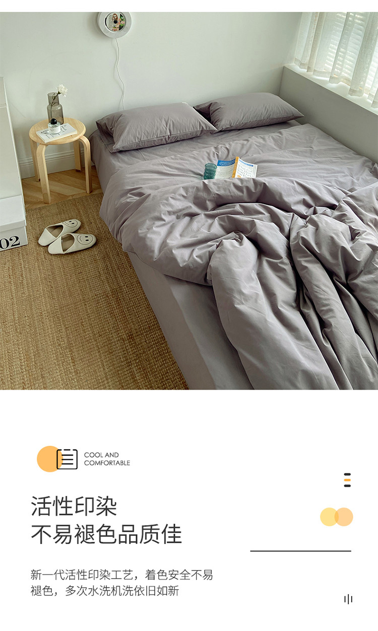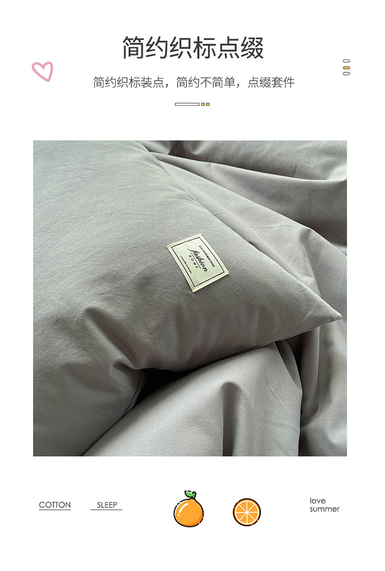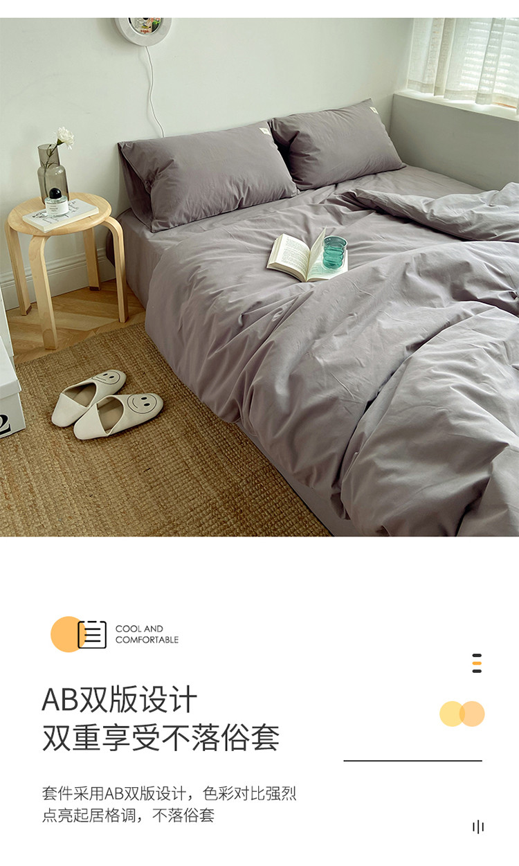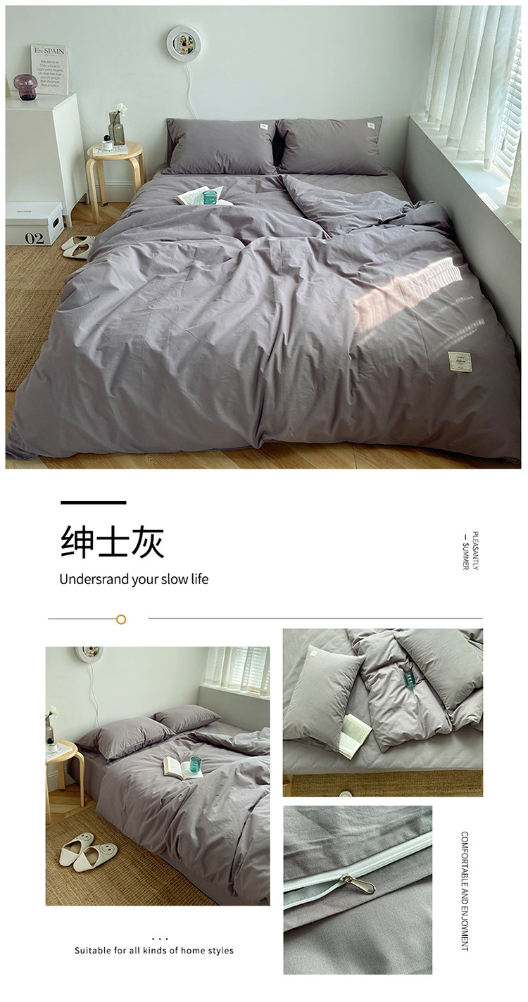 雅居纺家纺 2022新款全棉水洗棉四件套 绅士灰