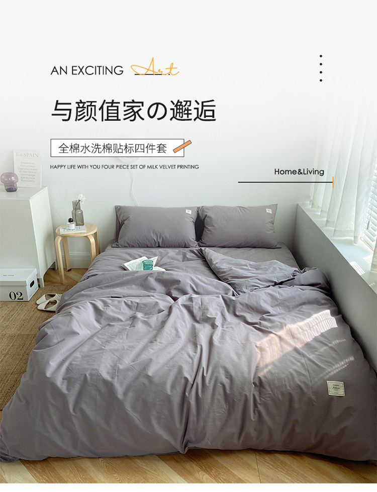 (总)雅居纺家纺 2022新款全棉水洗棉四件套,Ins粉蓝,ins浅蓝,白+墨子绿,白+绅士红,低调灰,低调灰绅士灰,豆绿+米黄,复古绿卡其,果绿绅士黄,焦糖咖啡,咖啡+卡其,米黄,米黄+明黄,米黄咖啡,米黄水绿,墨子绿,墨子绿卡其,墨子绿绅士黄,牛仔蓝低调灰,浅蓝深灰,清雅蓝绅士灰,绅士红卡其,绅士黄卡其,绅士灰,新蓝米黄