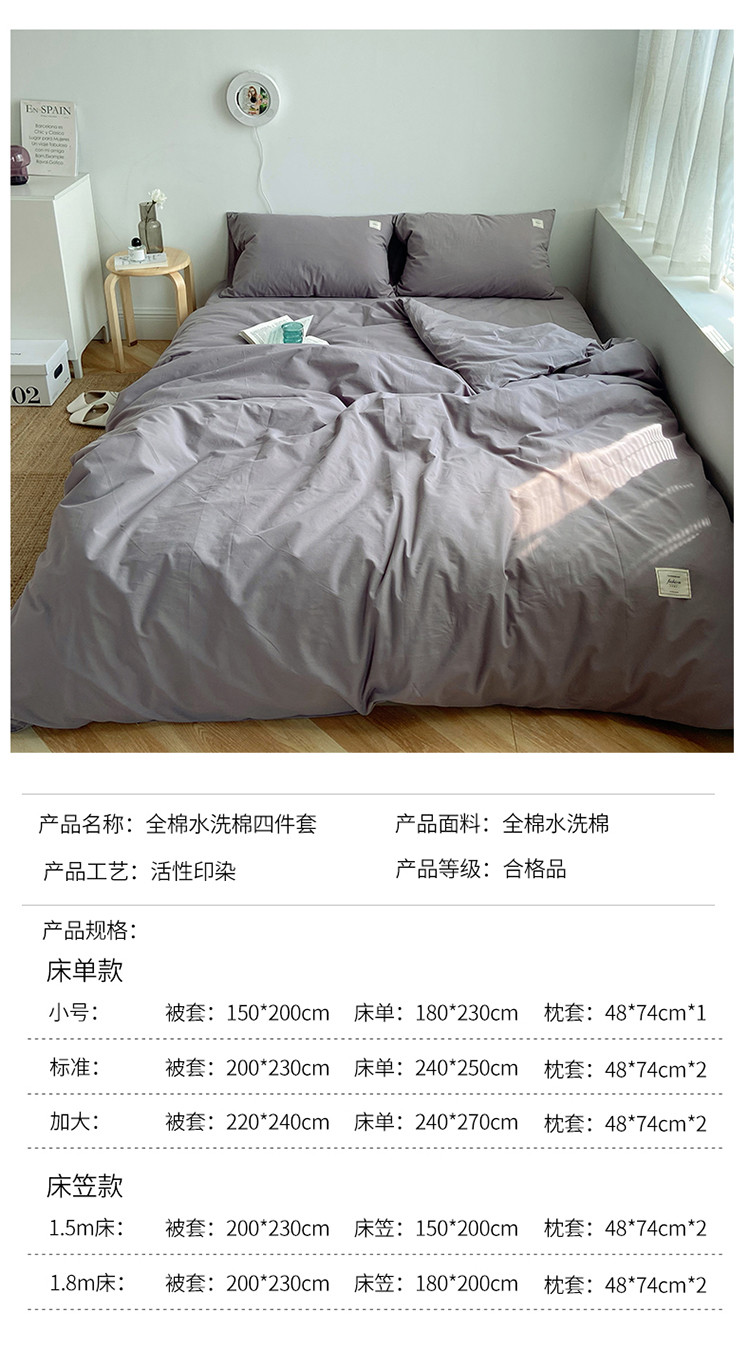 商品名称:雅居纺家纺 2022新款全棉水洗棉四件套 绅士灰
