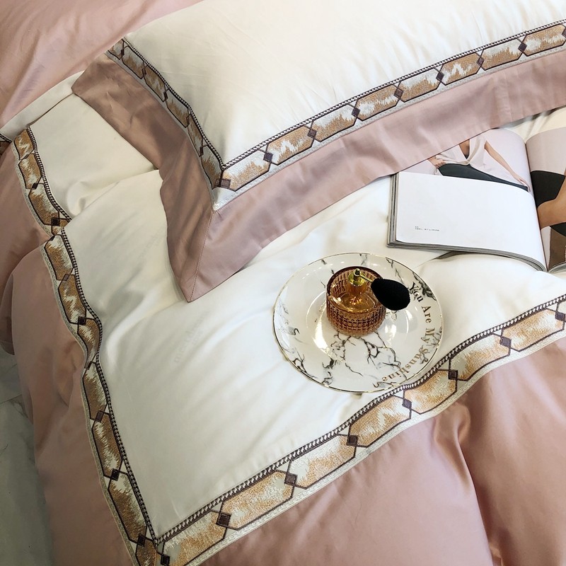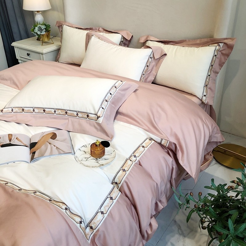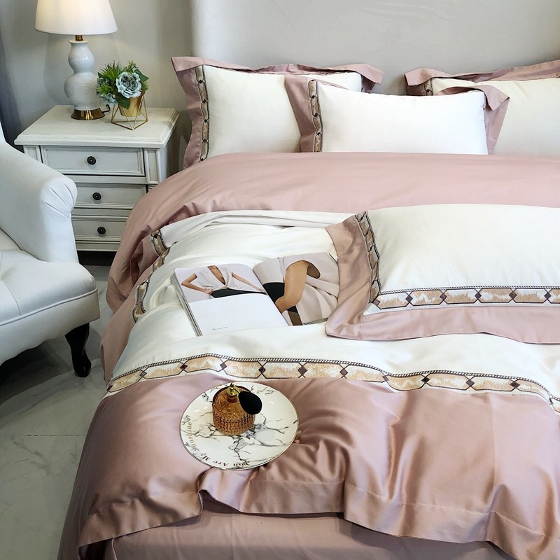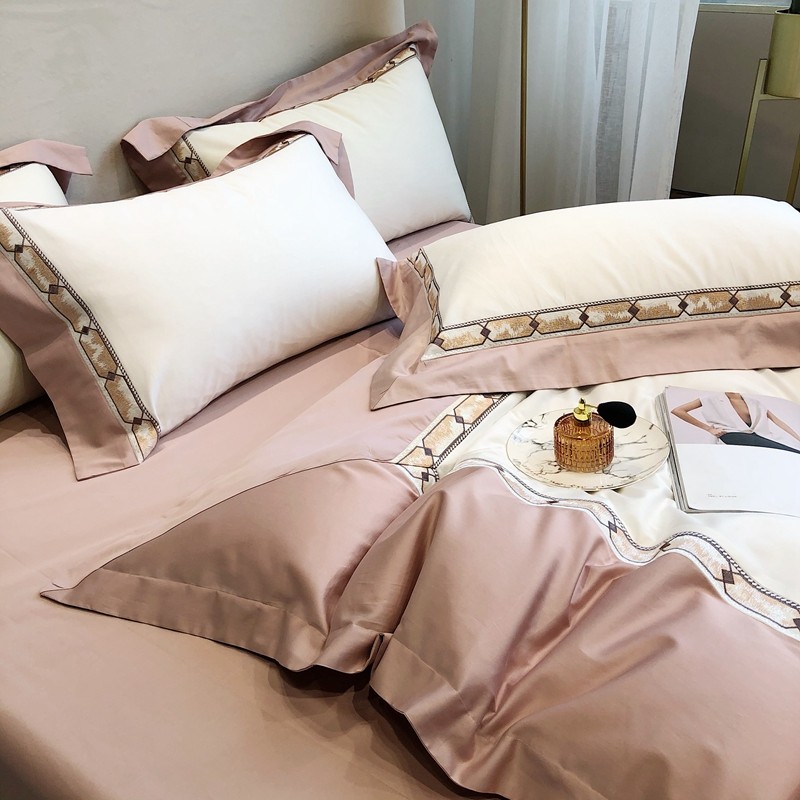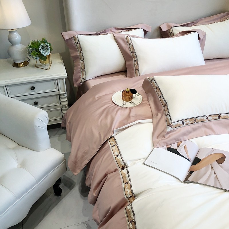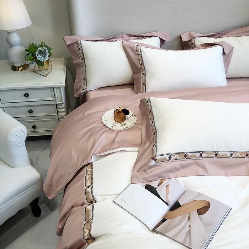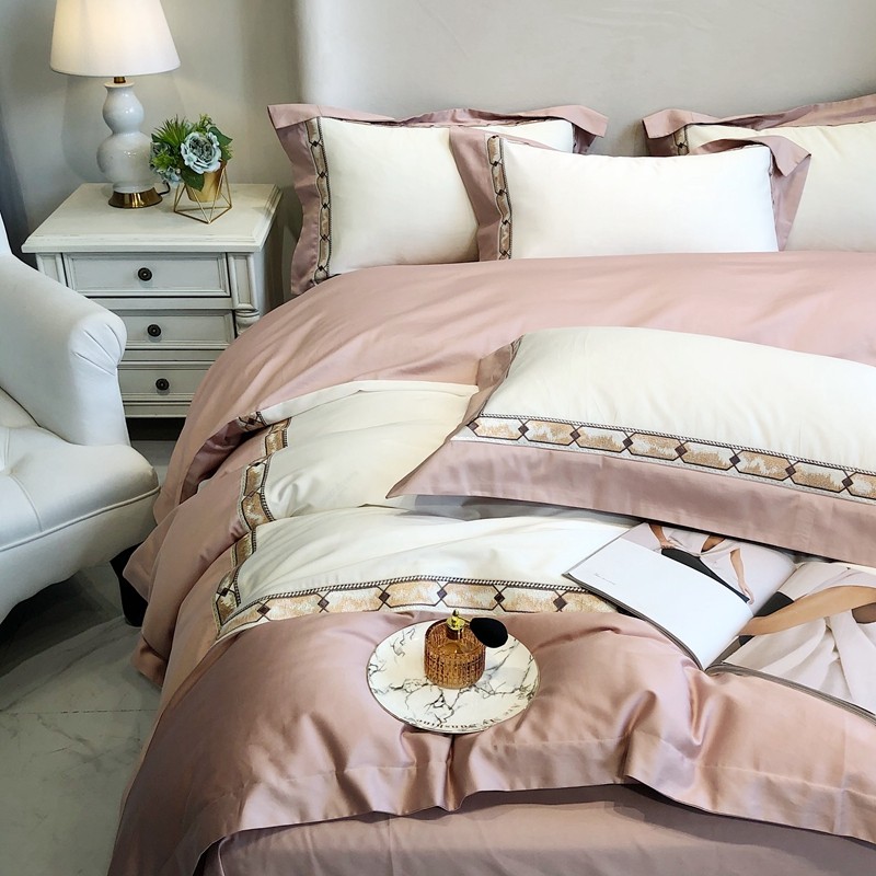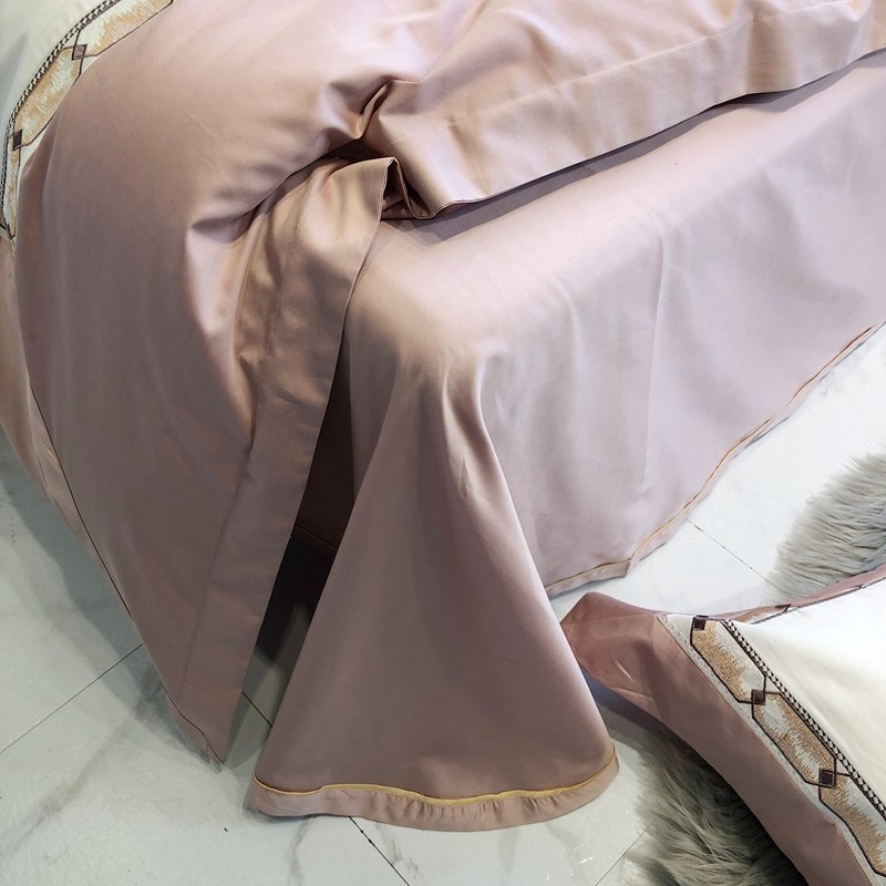 馨蕊2021新款100支双股澳棉刺绣四件套-芭莎夫人 粉豆沙