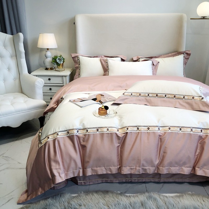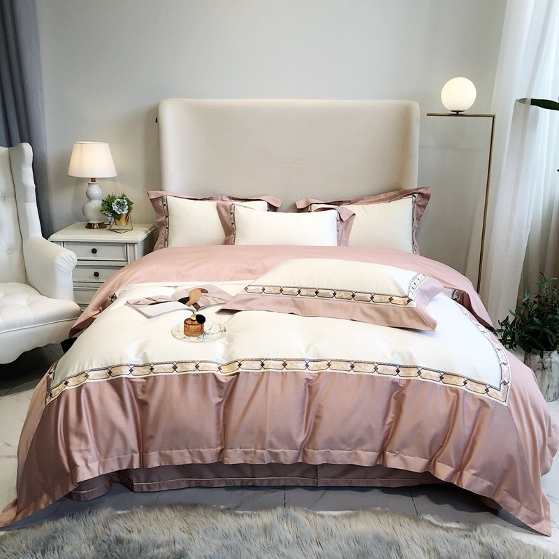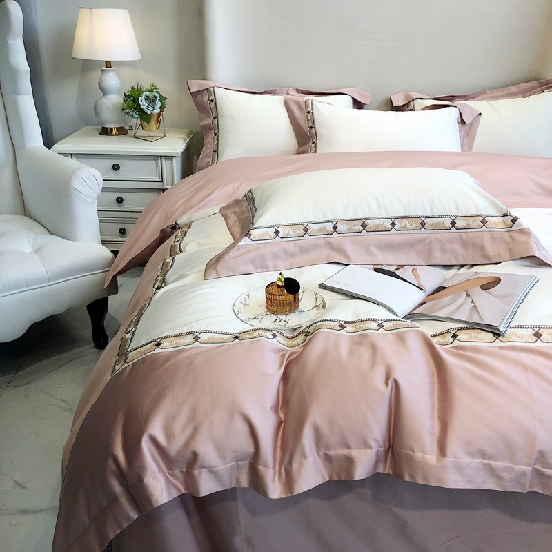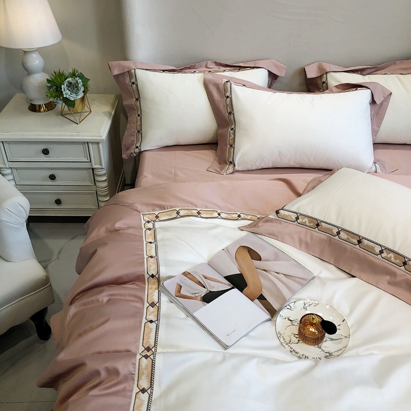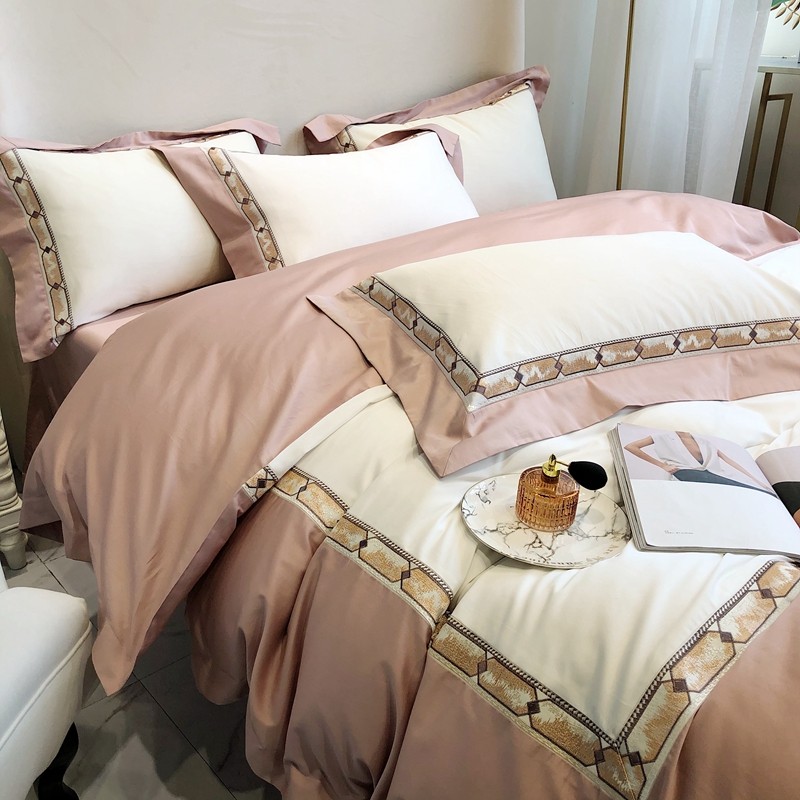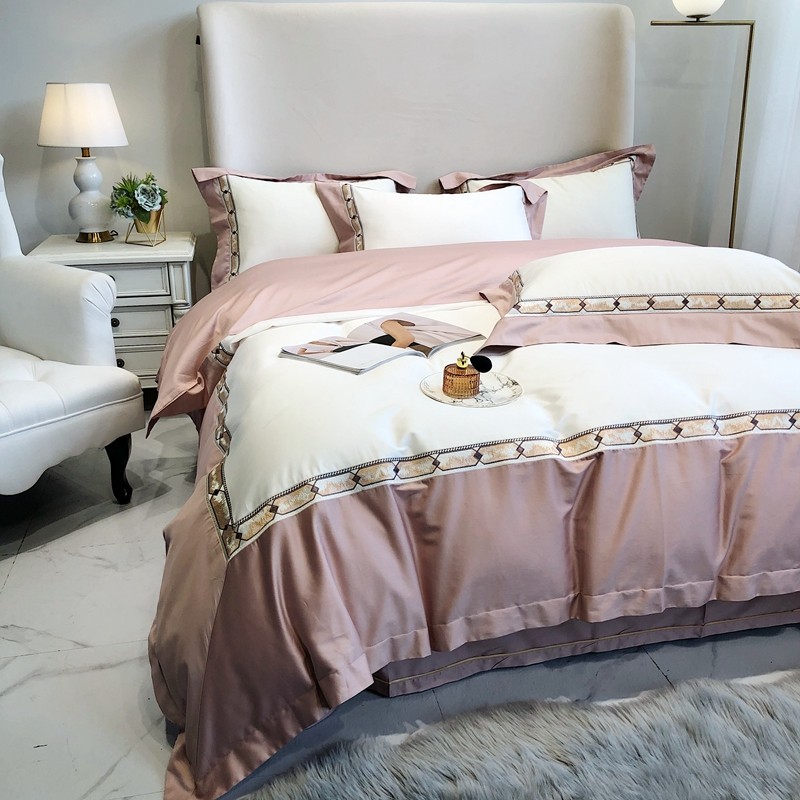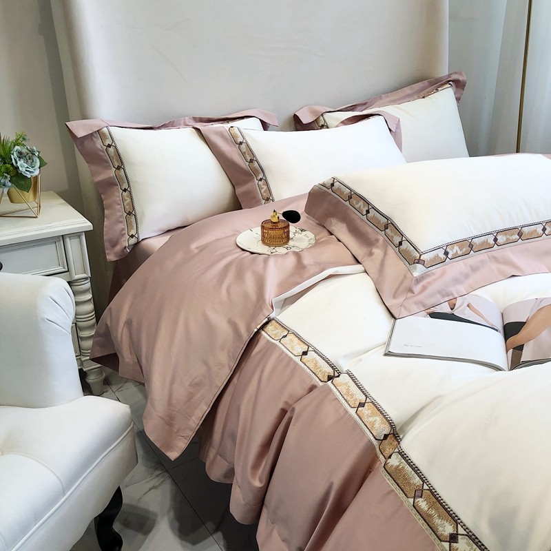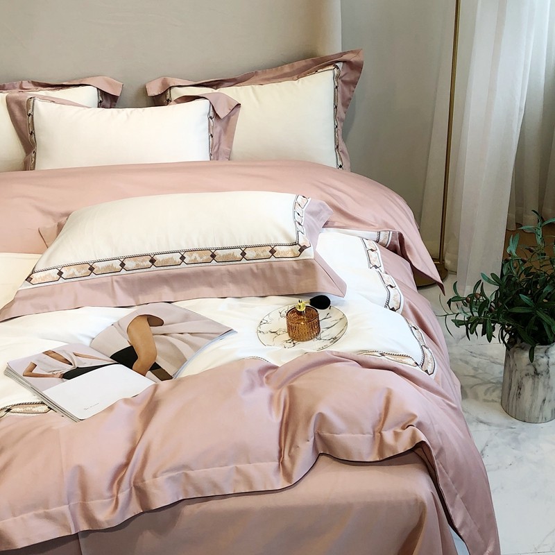 馨蕊2021新款100支双股澳棉刺绣四件套-芭莎夫人 粉豆沙