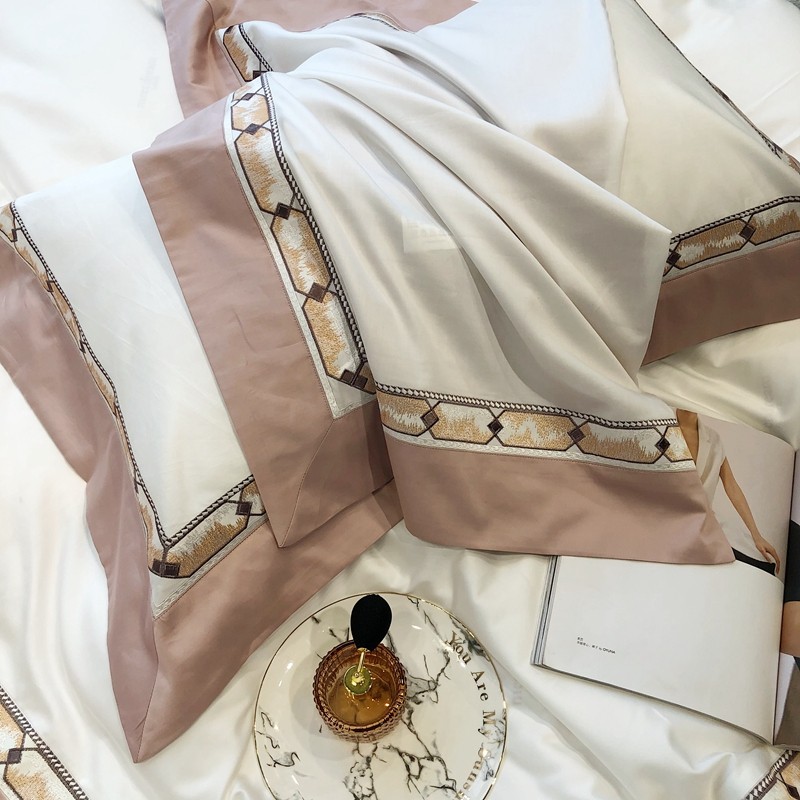 商品名称:馨蕊2021新款100支双股澳棉刺绣四件套-芭莎夫人 粉豆沙