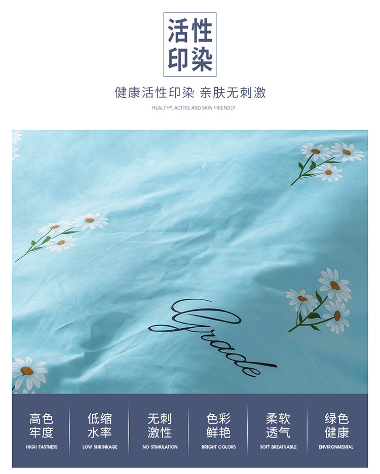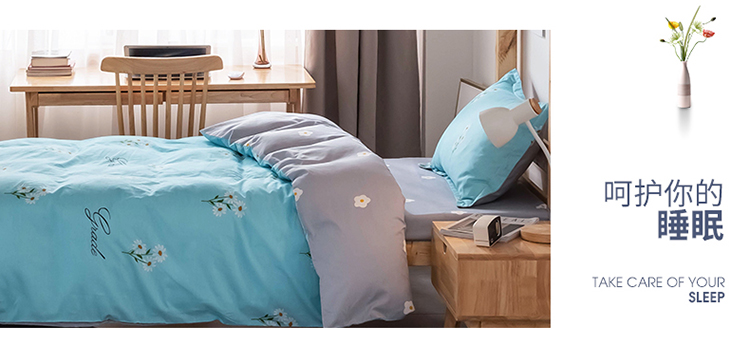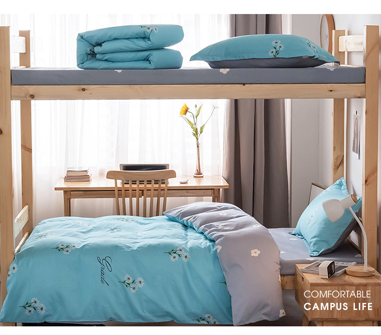 芃成家纺 2021新款学生三件套 花香清新蓝
