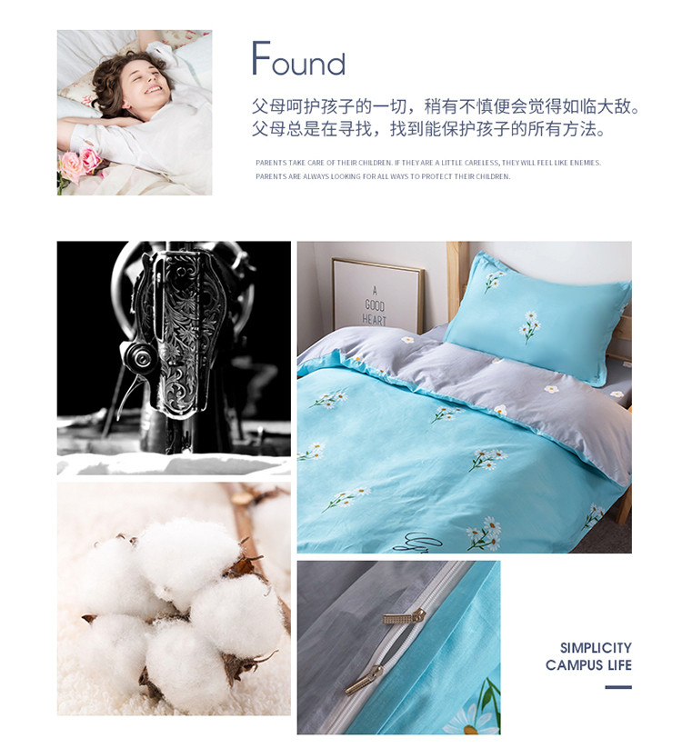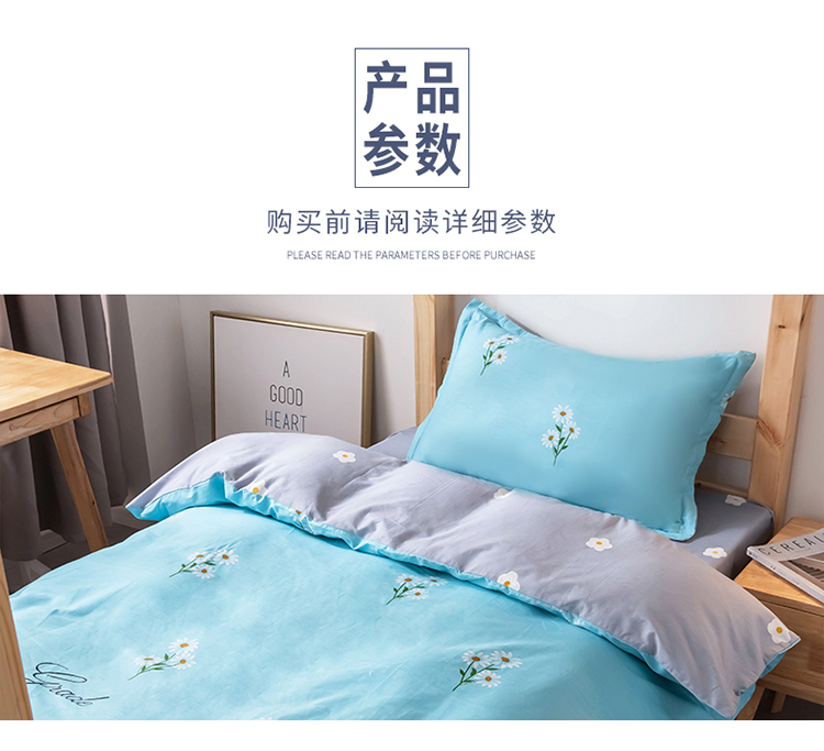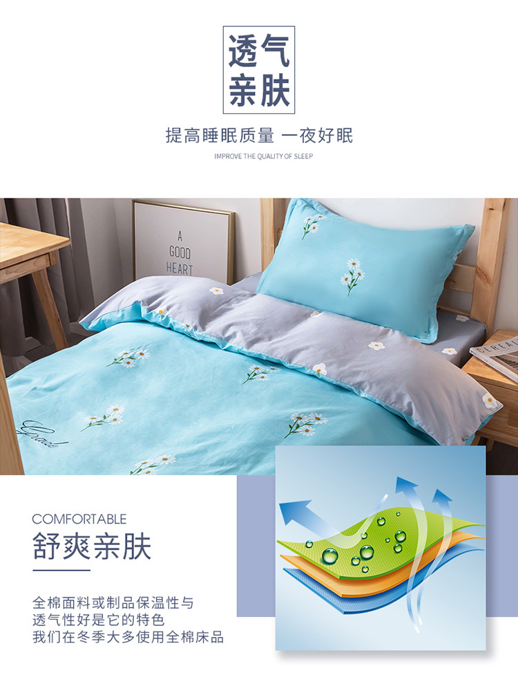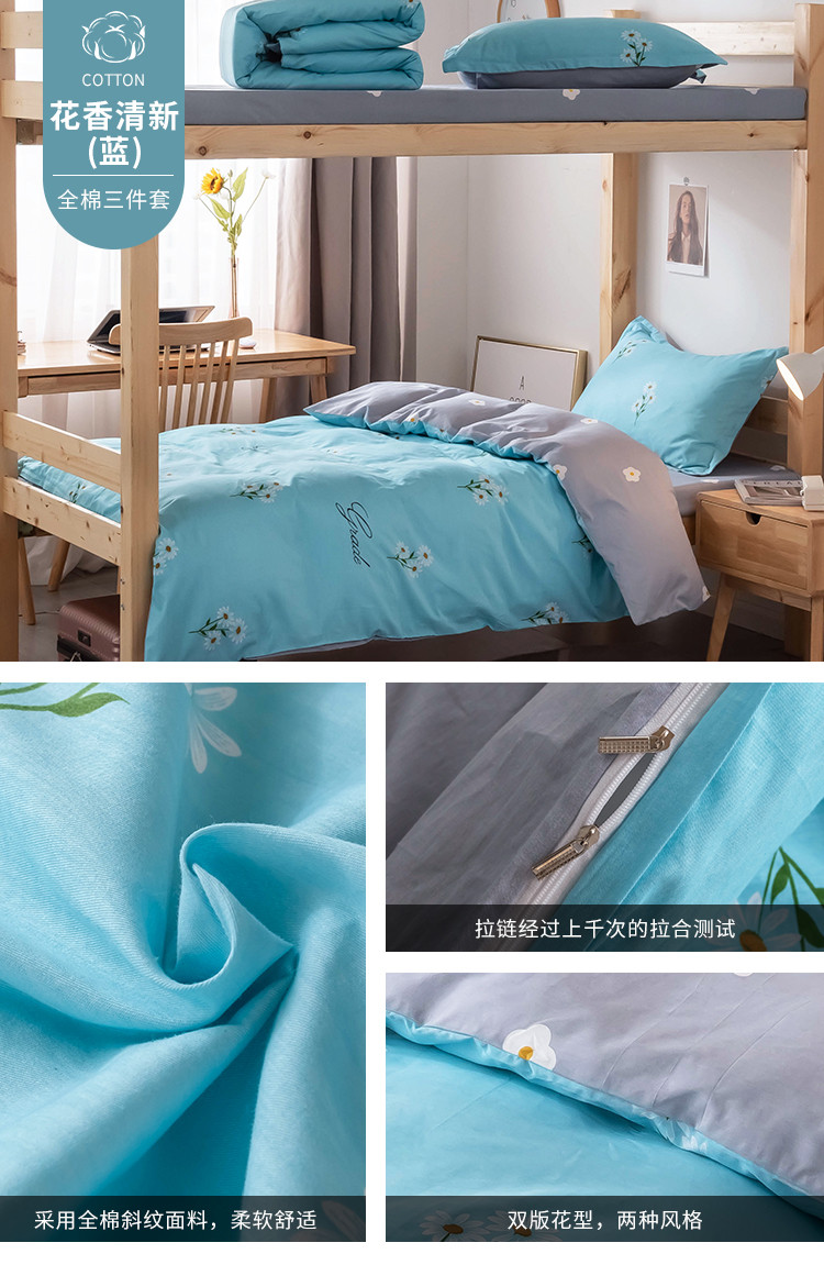 商品名称:芃成家纺 2021新款学生三件套 花香清新蓝