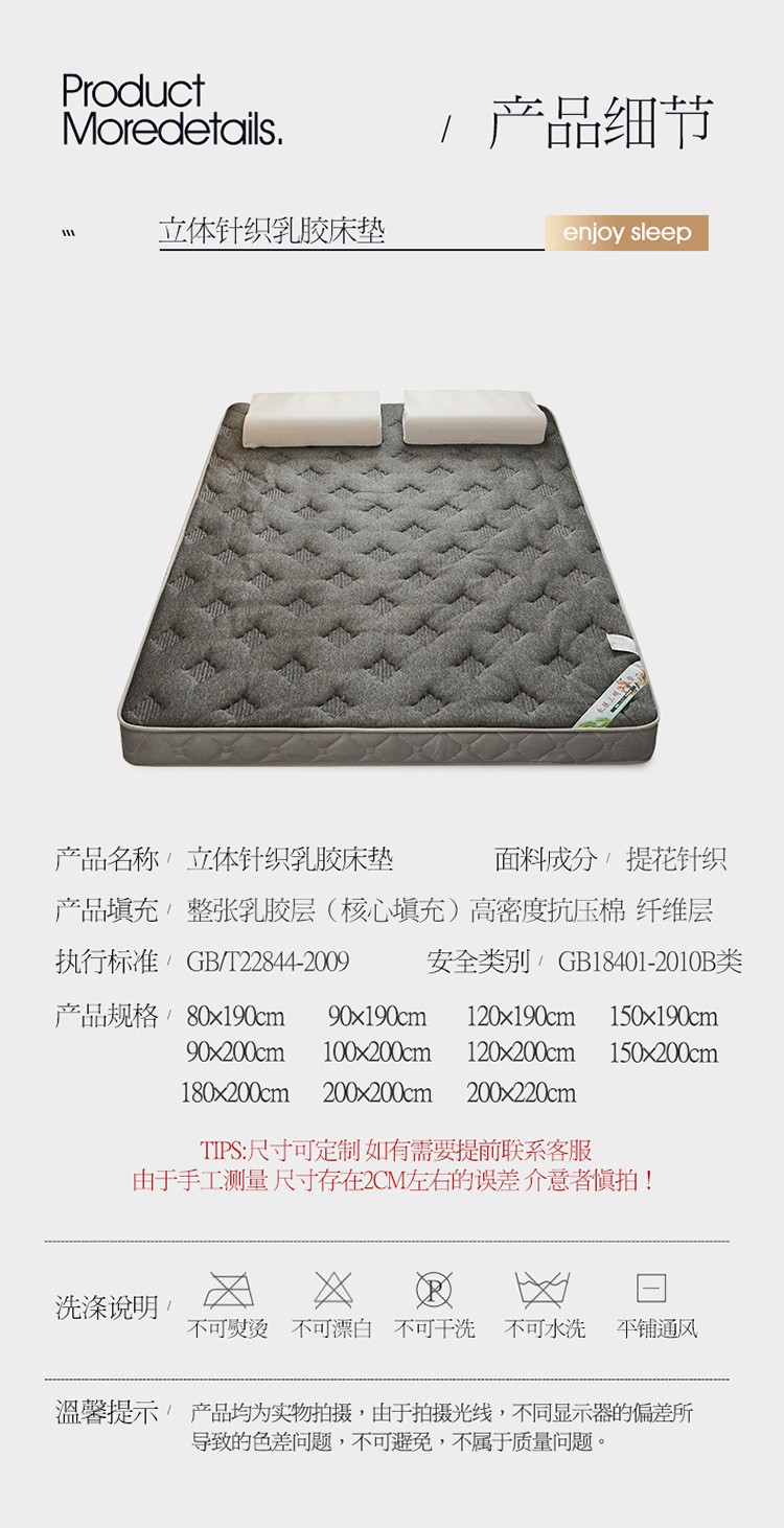 当前位置: 91家纺网 > 商品网购 > 床垫/床褥/床护垫 > 普通床垫 > 欣罗兰 2022新款提花针织立体床垫 凹形灰-大床