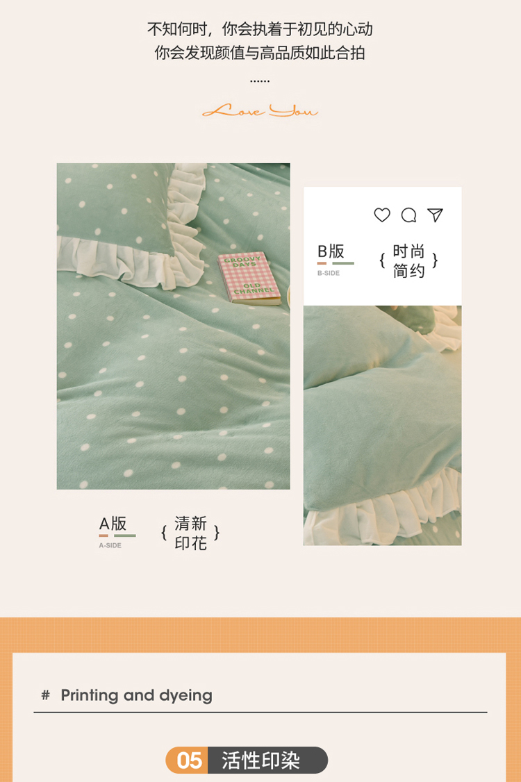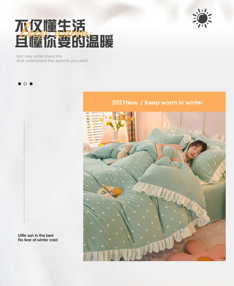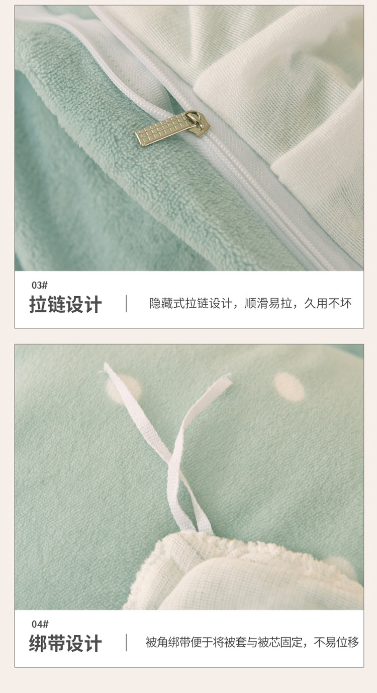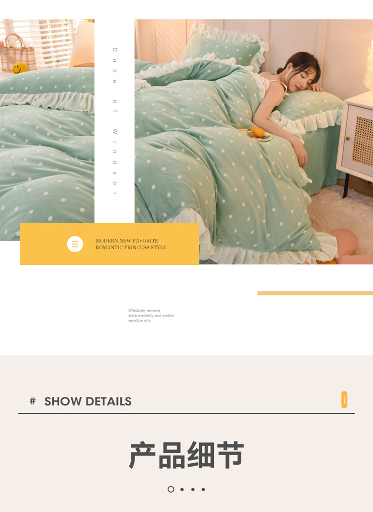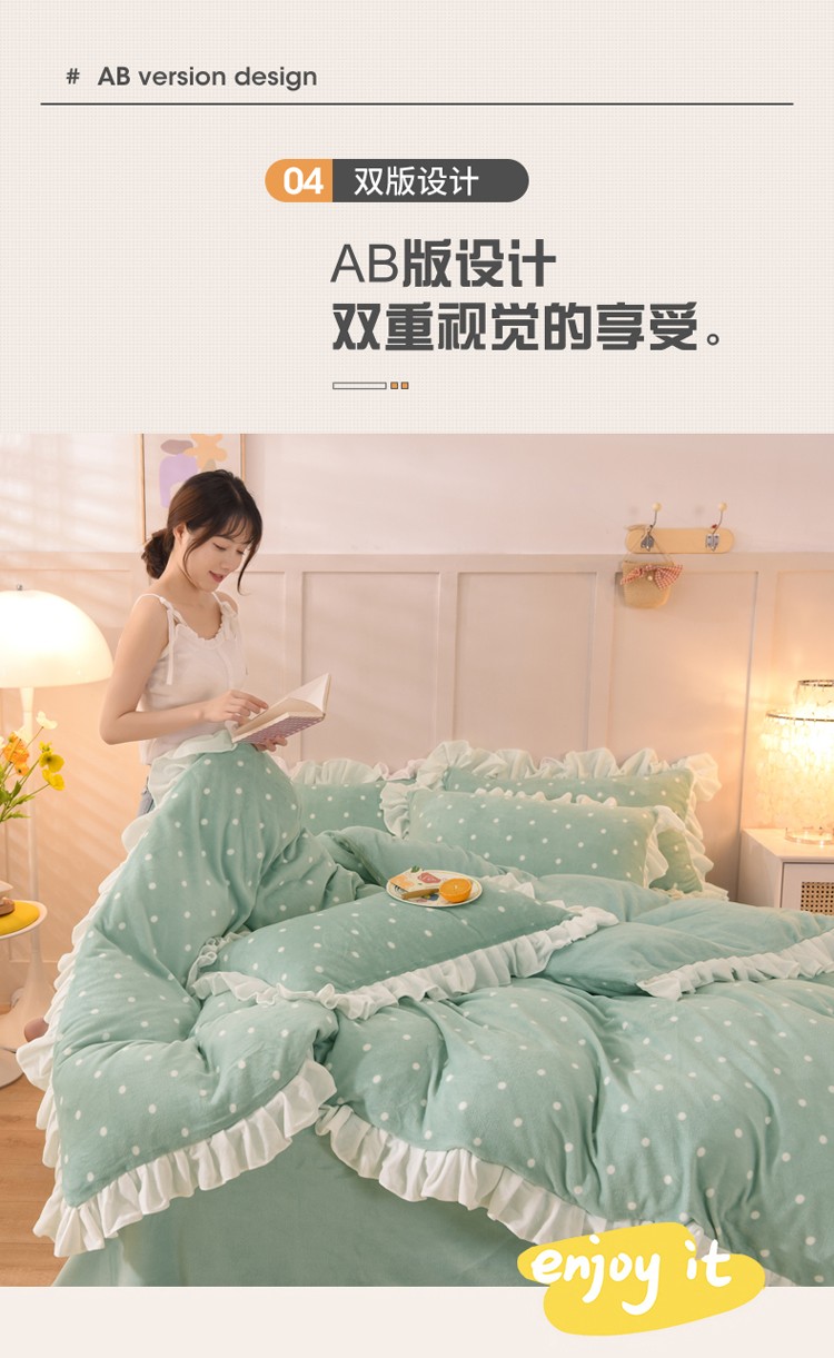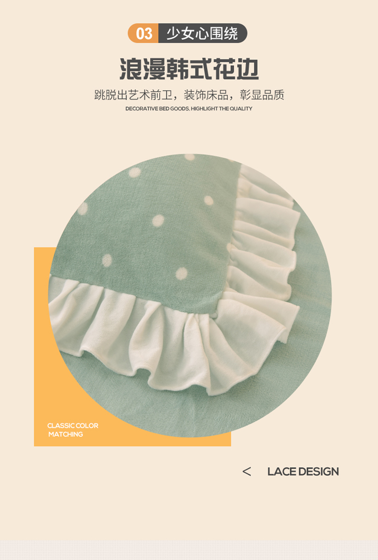 商品名称:绒世界 2022新款牛奶绒花边款四件套-爱心 绿-波点