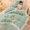 绒世界 2022新款牛奶绒花边款四件套-爱心 绿-波点
