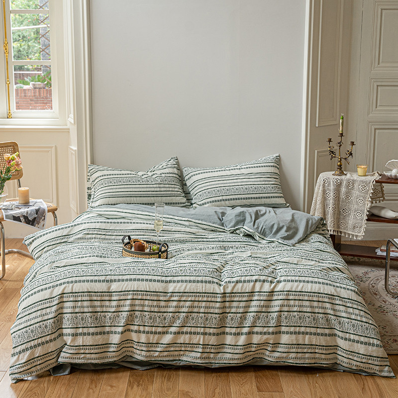 (总)恋恋三季 2025新款中古风色织水洗棉四件套-琉璃伯爵,琉璃伯爵【枕套bv绿+藏蓝】,琉璃伯爵【枕套混搭bv绿】,琉璃伯爵【枕套混搭藏蓝】,琉璃伯爵【枕套条纹】