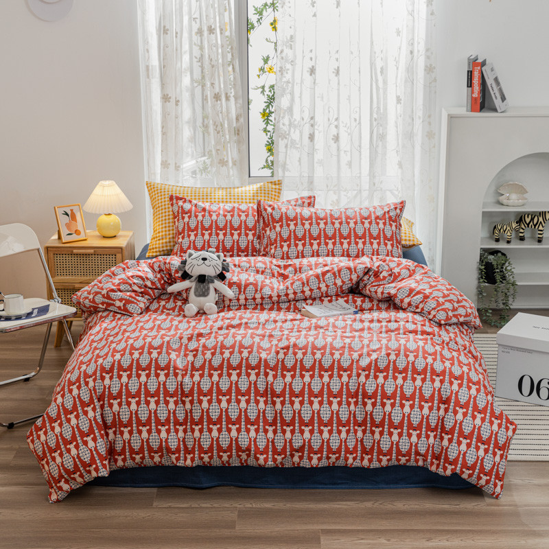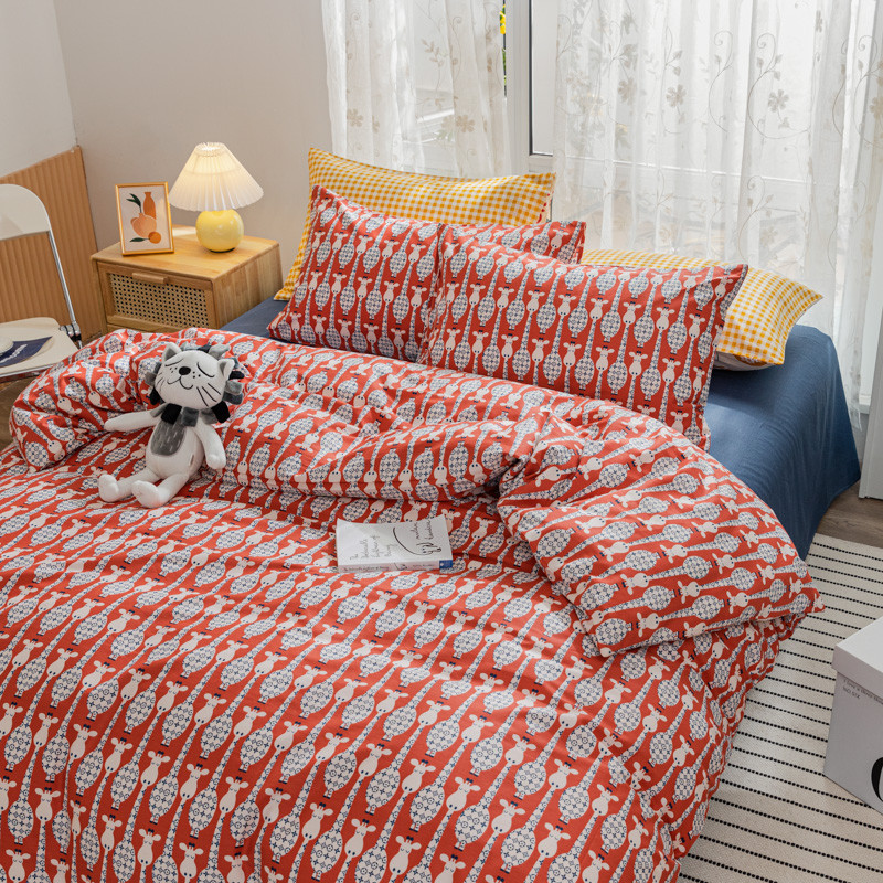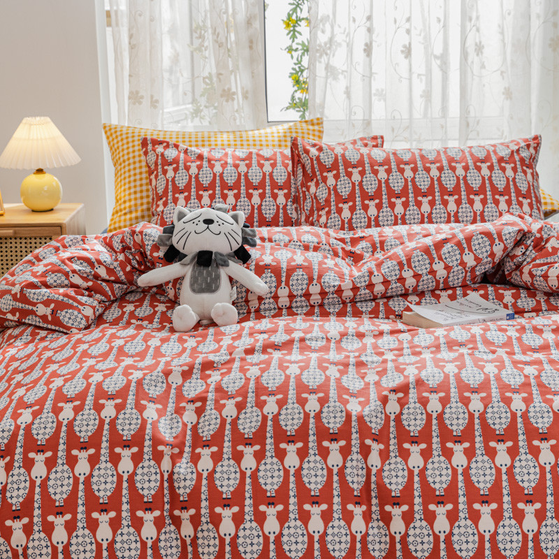 感遇家纺 2021新款小清新卡通系列四件套长颈鹿