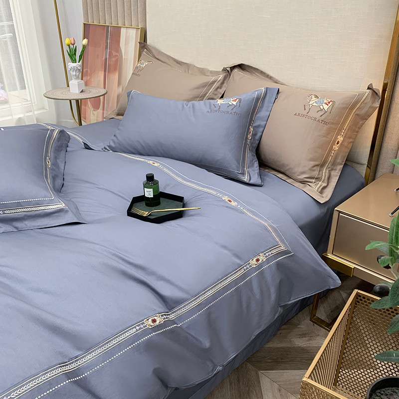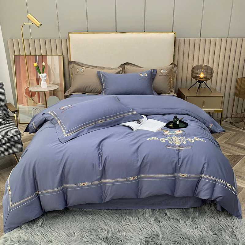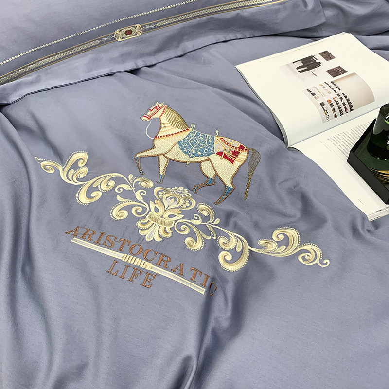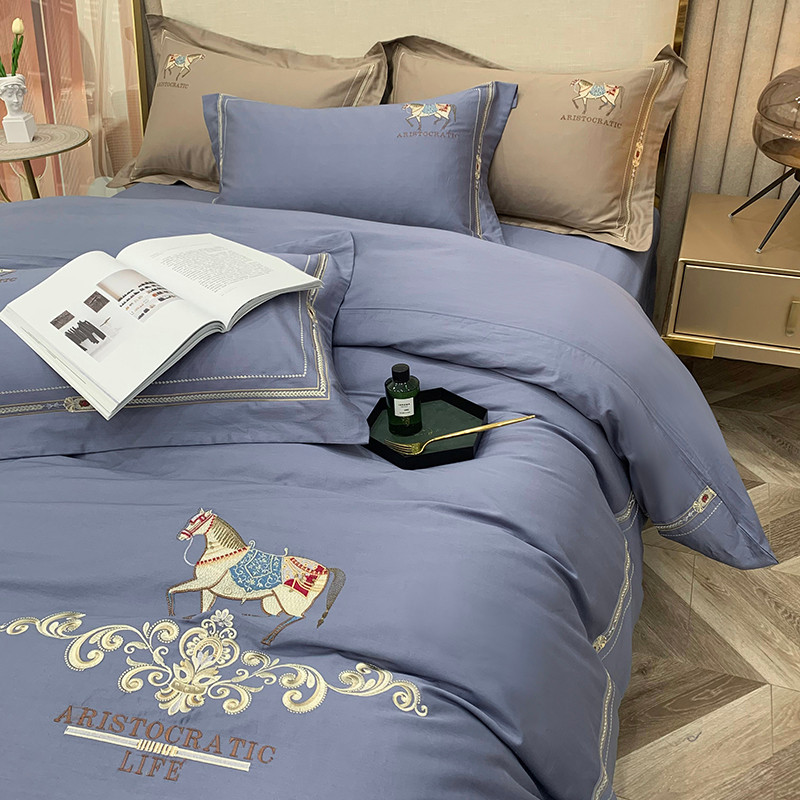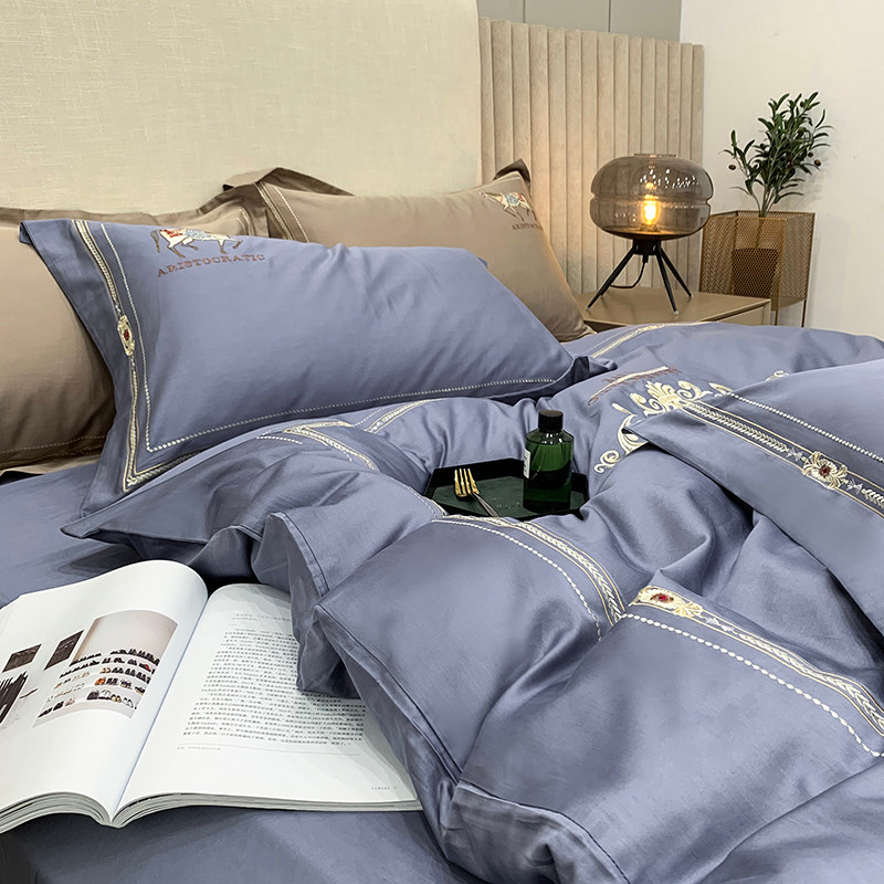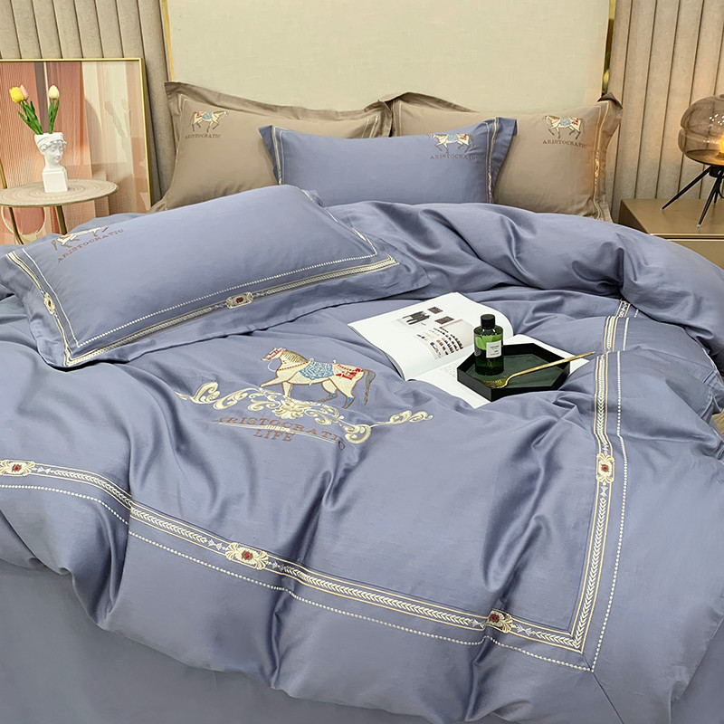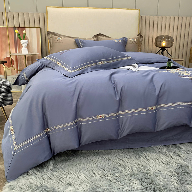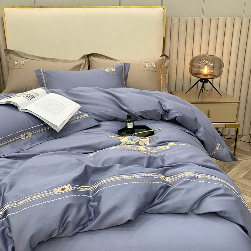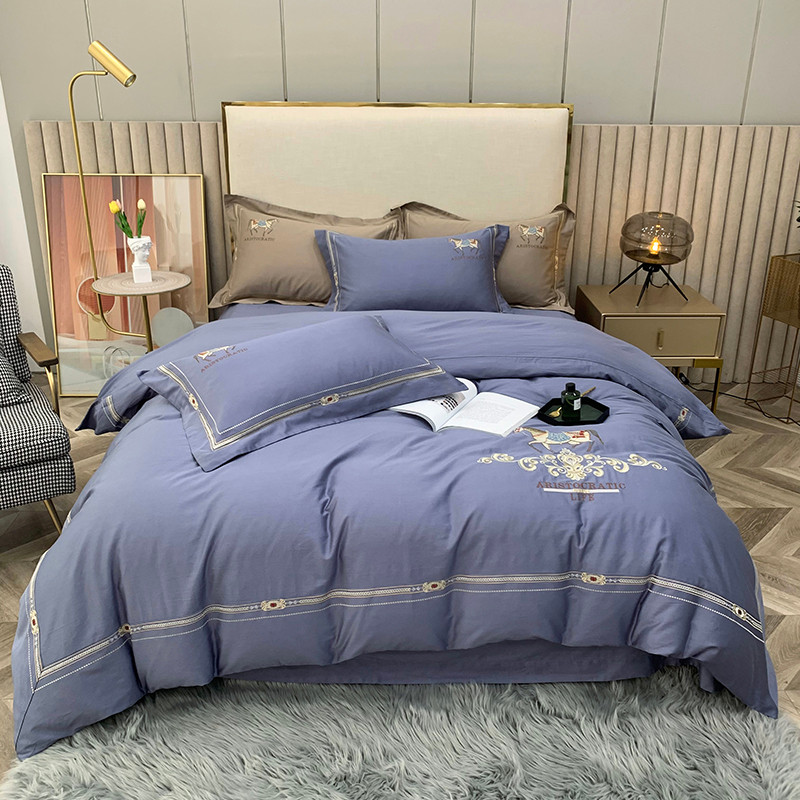 顾家家居2023新款80支新疆长绒棉绣花四件套 凯萨琳-高冷紫