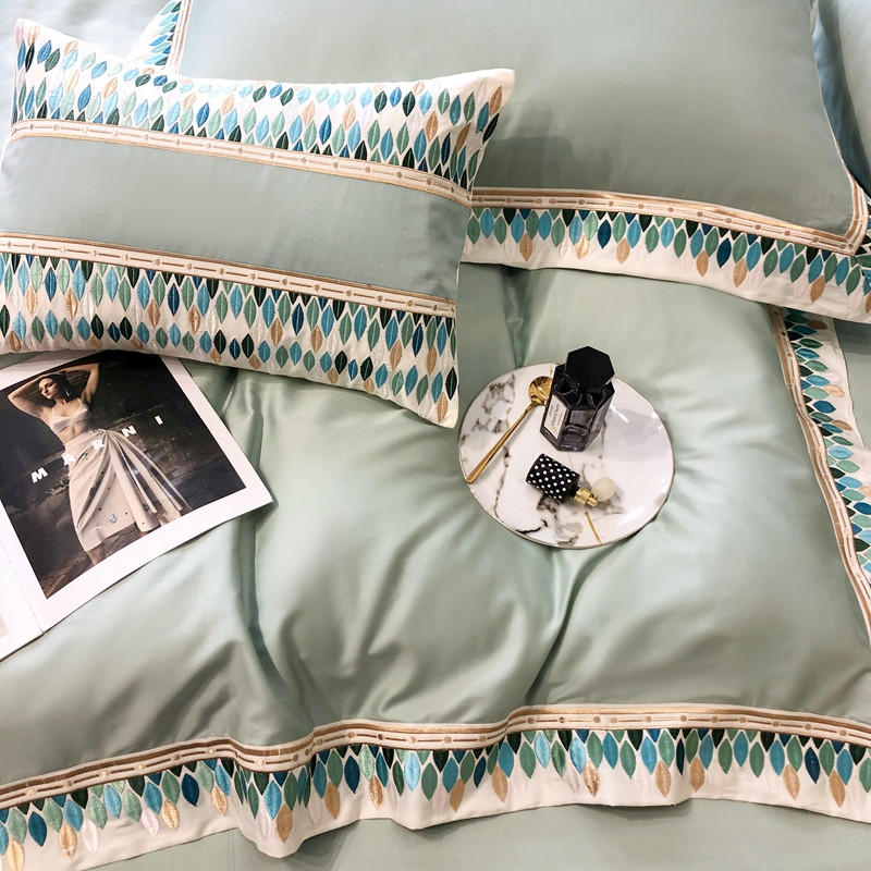 馨蕊2021秋冬新品100支澳棉四件套高定系列罗地亚-冰沙绿