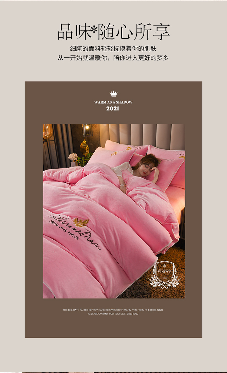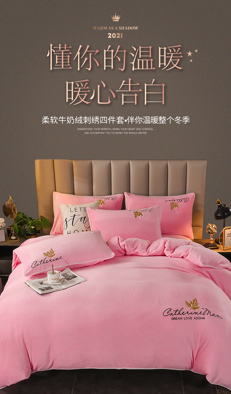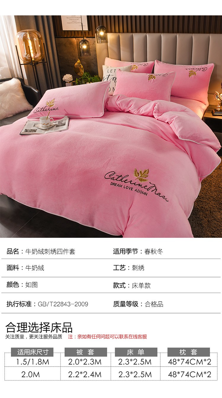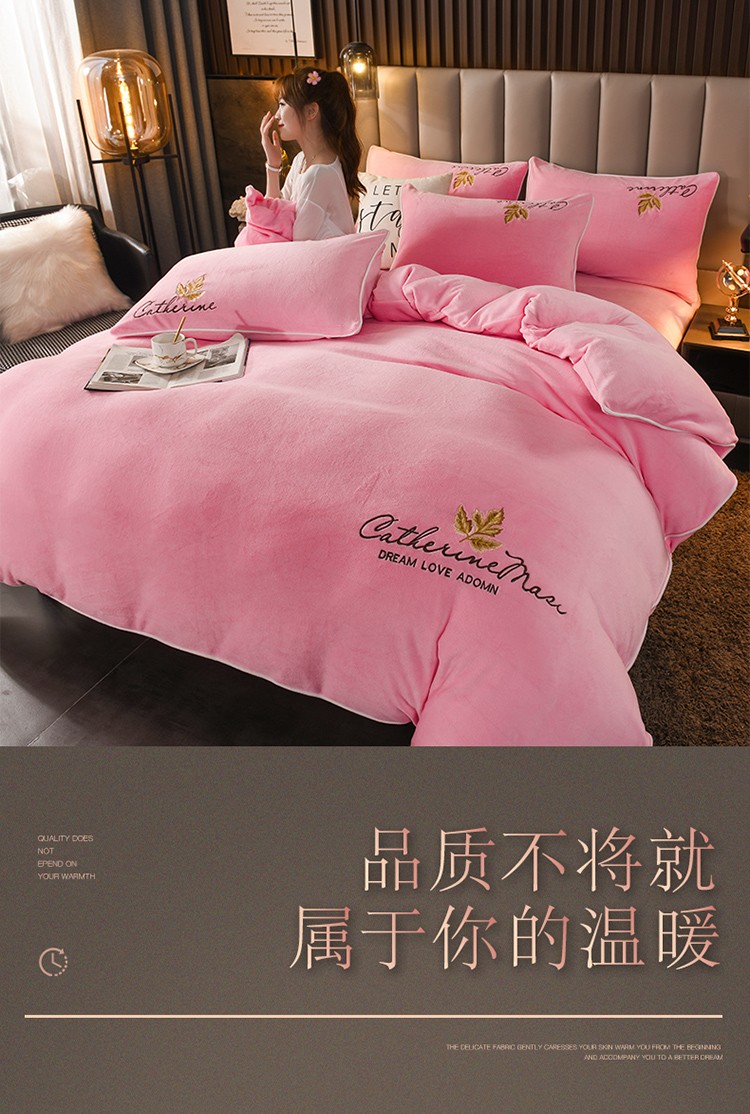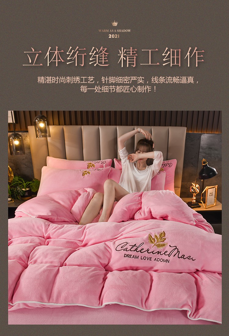 商品名称:迷仙巢 2021新款牛奶绒系列四件套枫叶 枫叶-粉玉