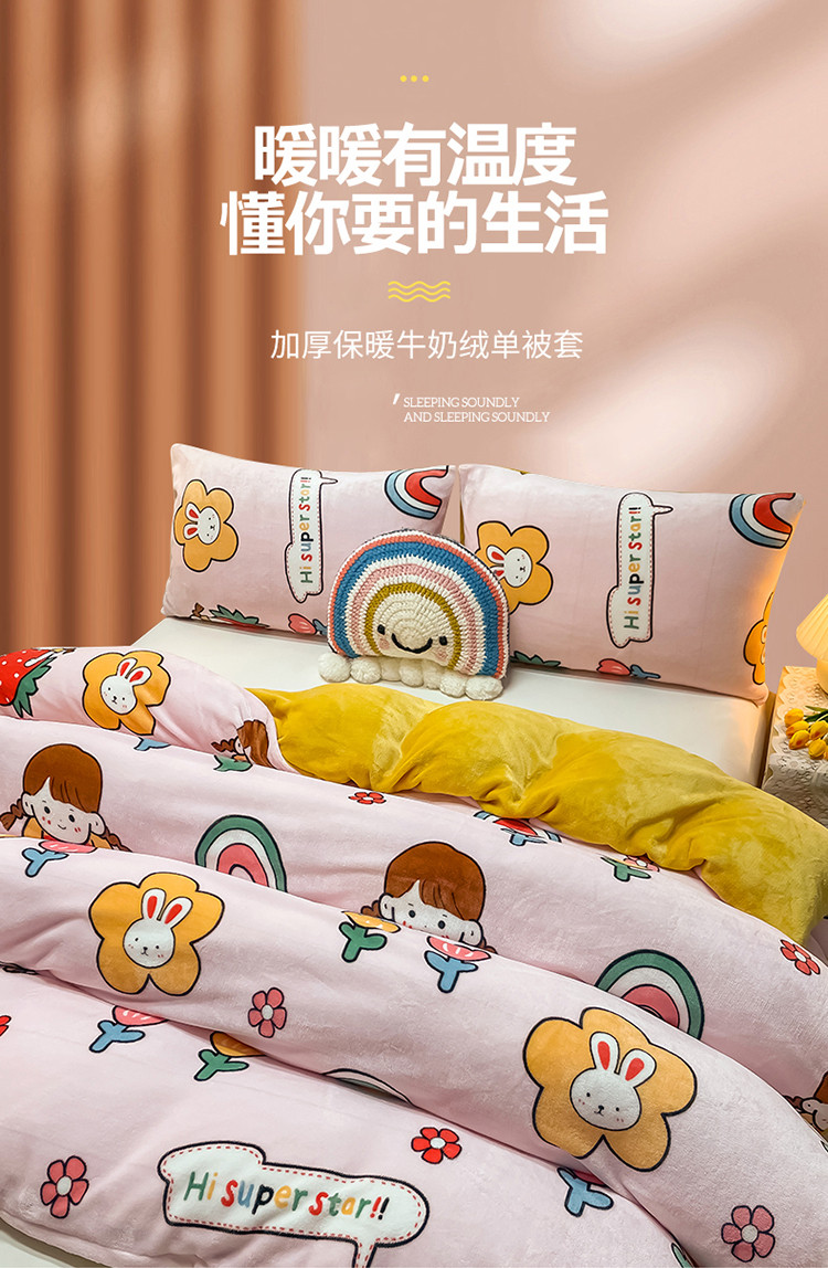 商品名称:芃成家纺 2021新款牛奶绒印花单被套 彩虹漾