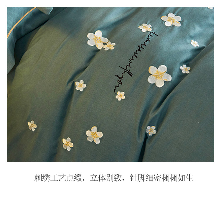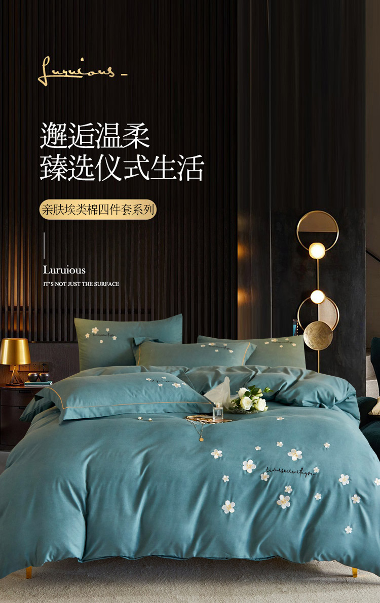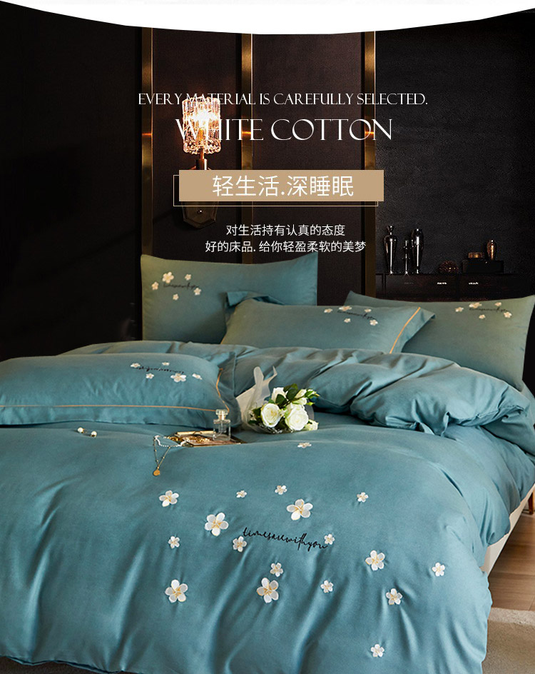 凡客2021秋冬新款埃类棉刺绣磨毛四件套-樱语 樱语-水蓝