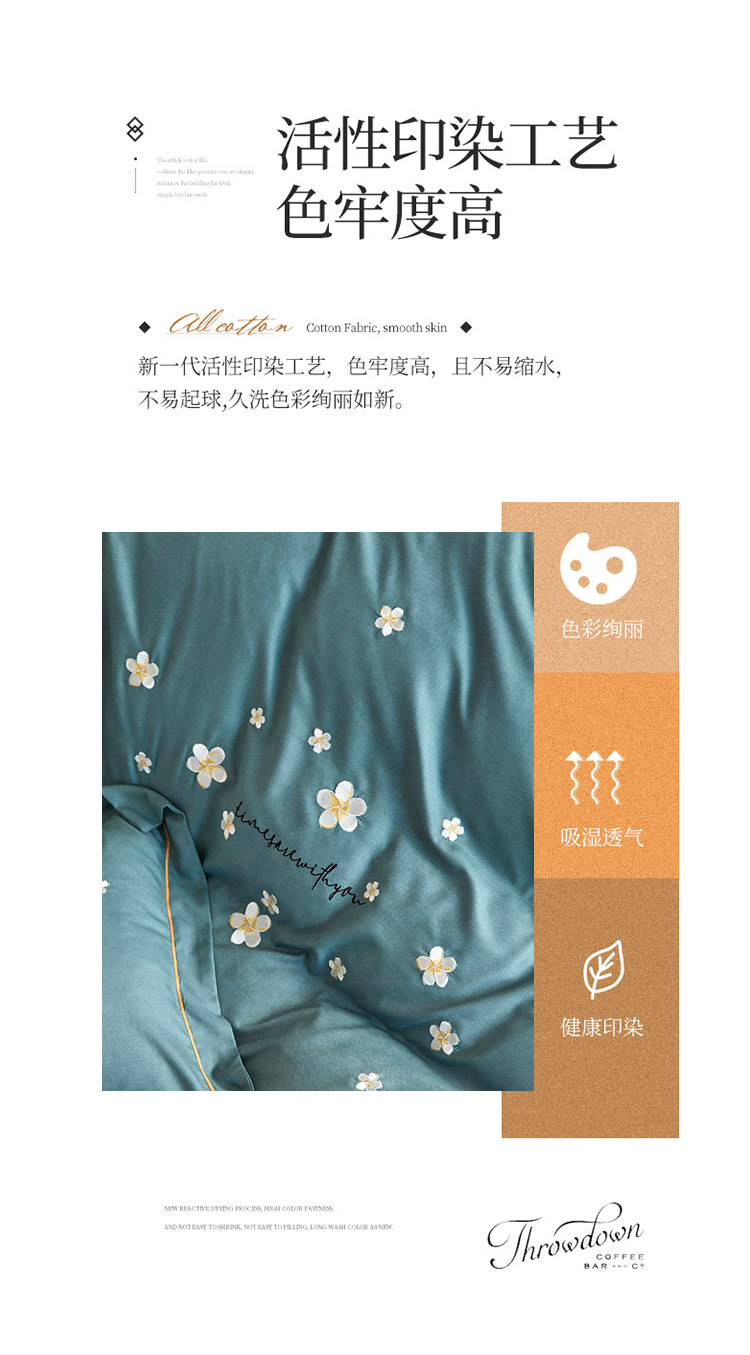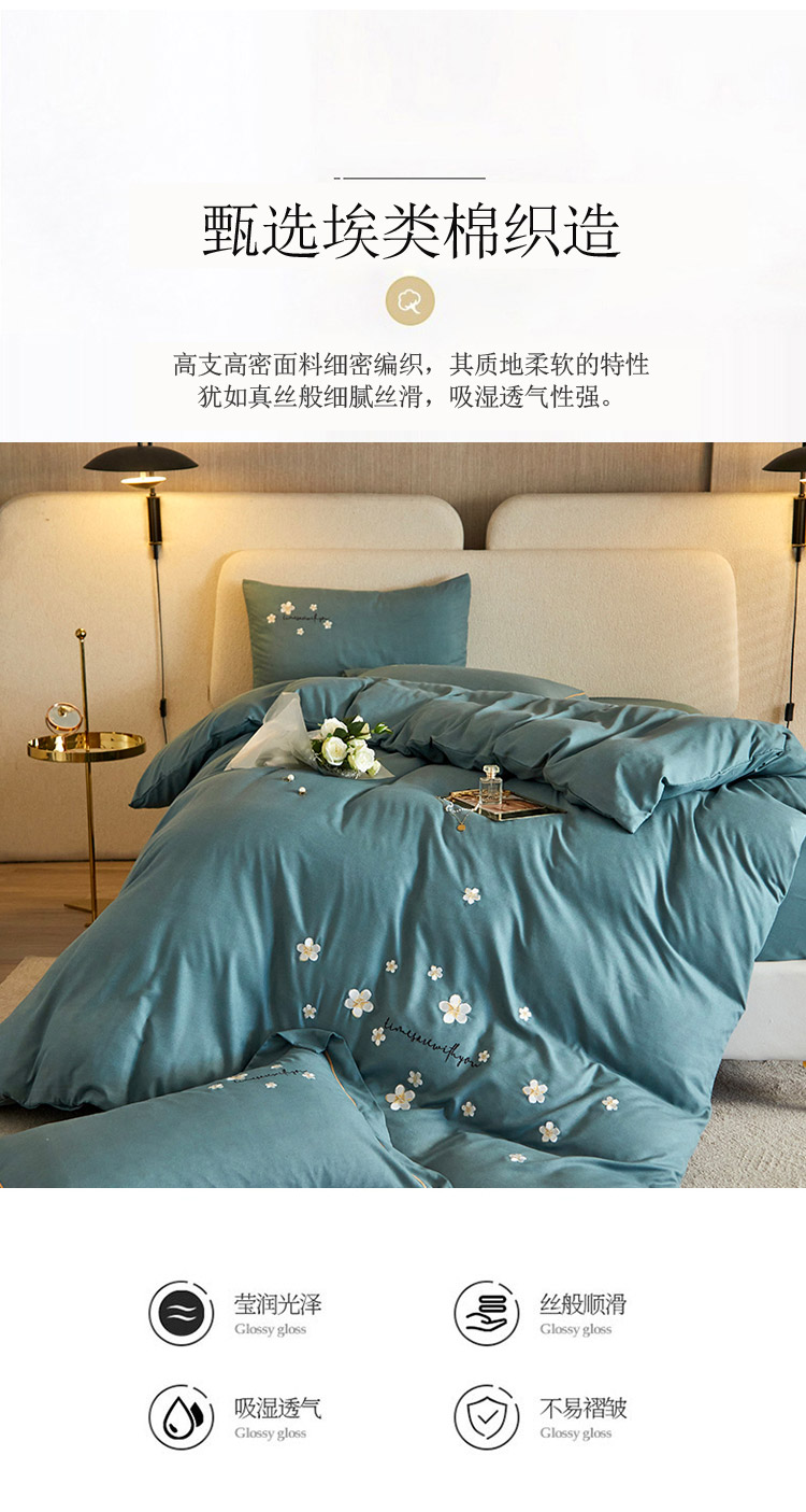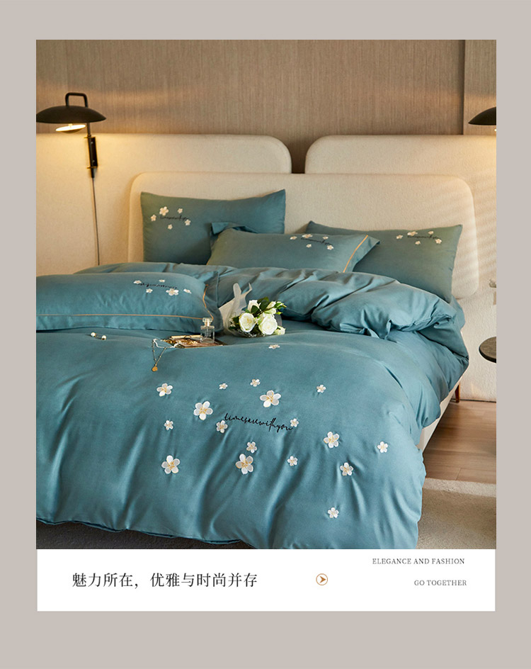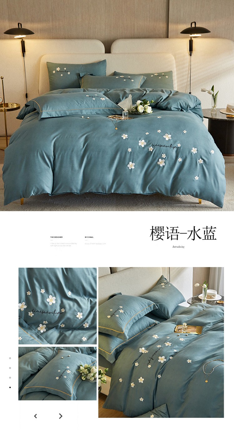 商品名称:凡客2021秋冬新款埃类棉刺绣磨毛四件套-樱语 樱语-水蓝