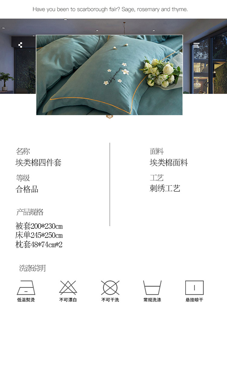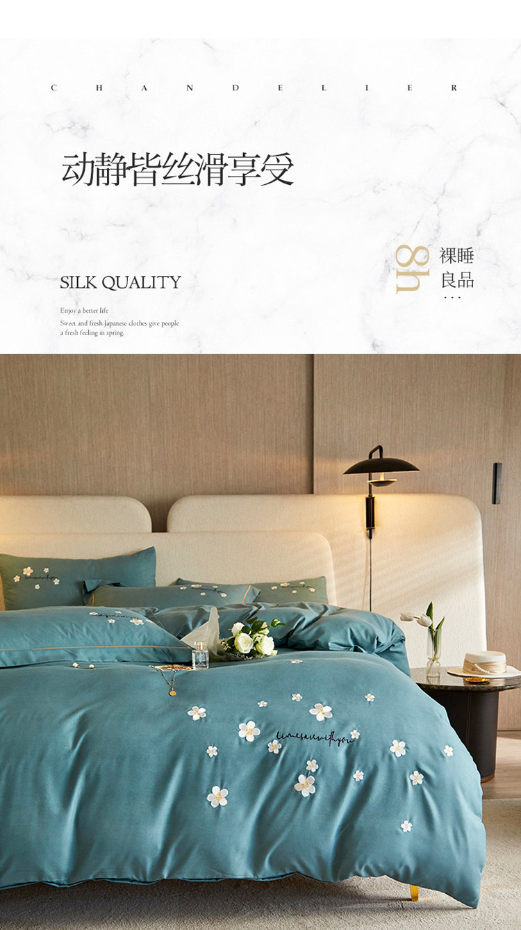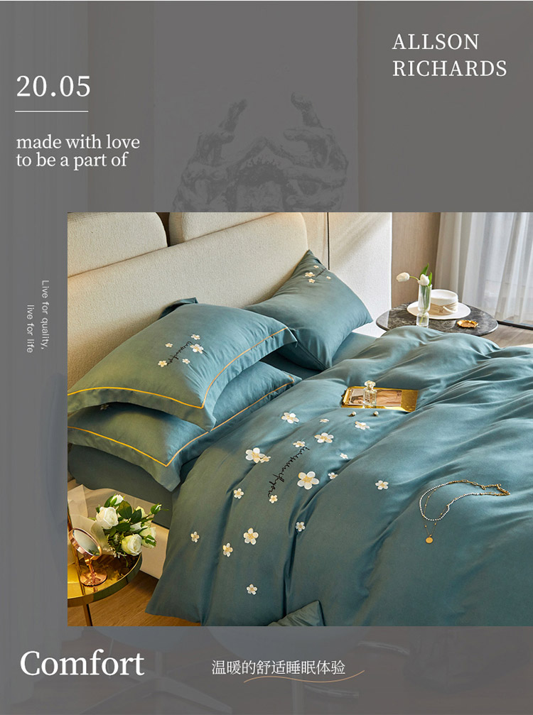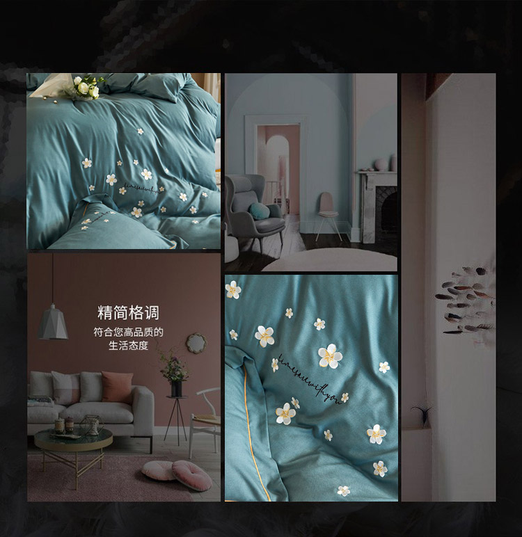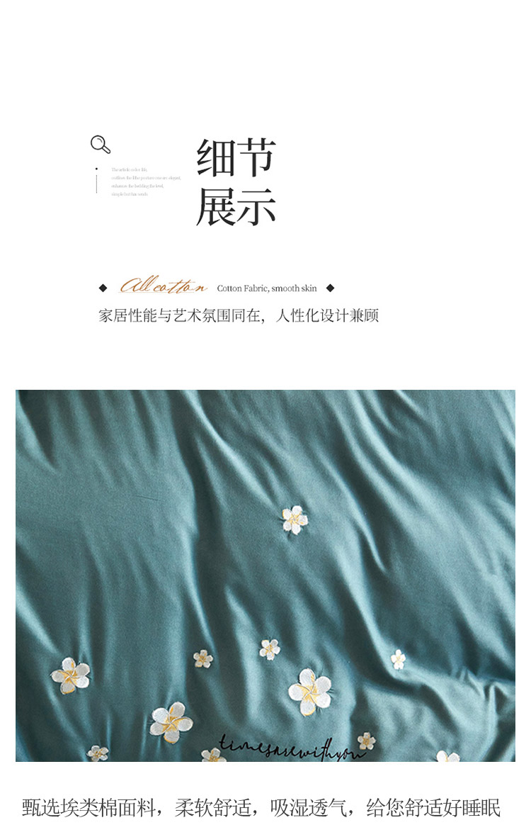 商品名称:凡客2021秋冬新款埃类棉刺绣磨毛四件套-樱语 樱语-水蓝