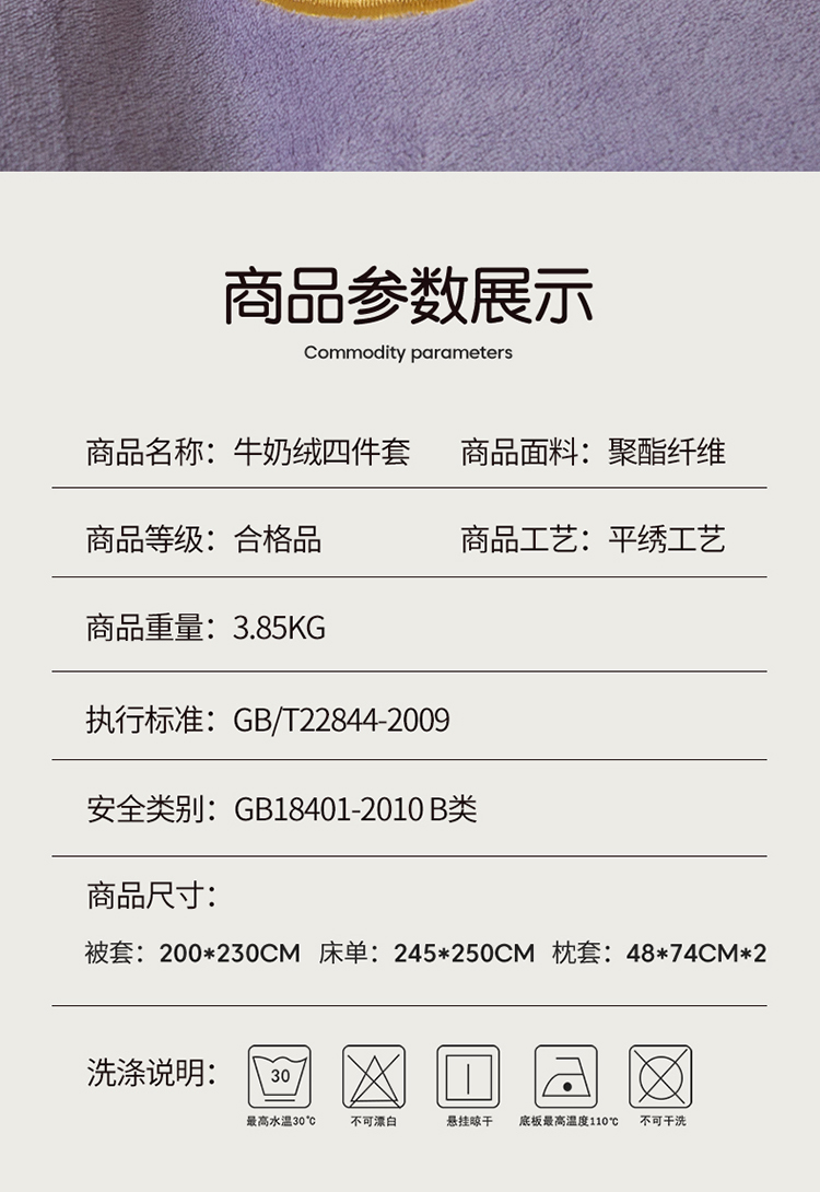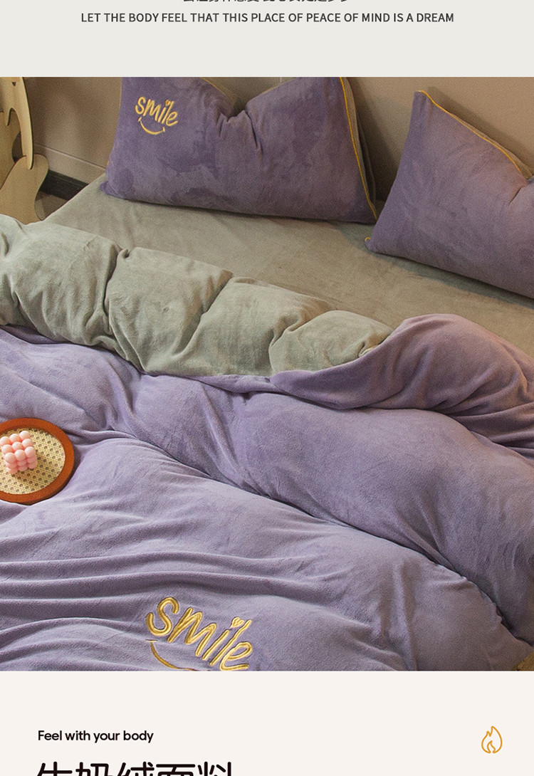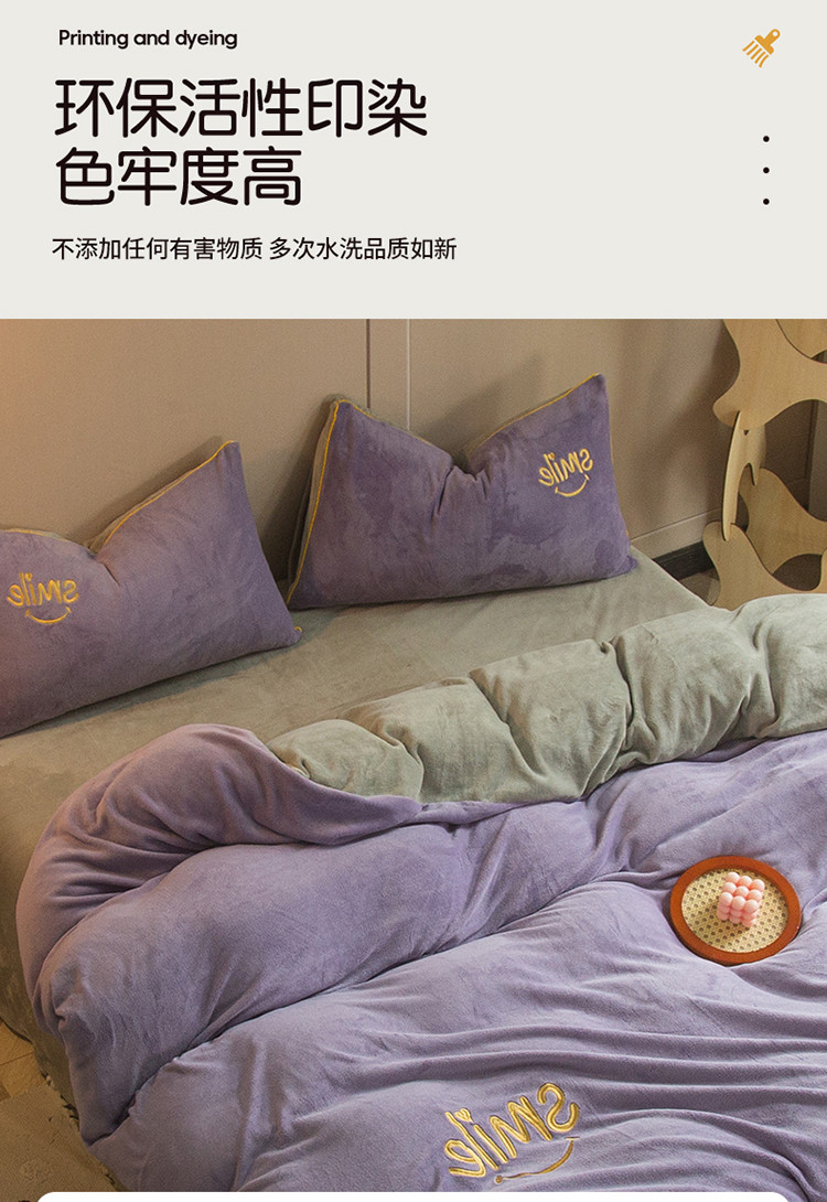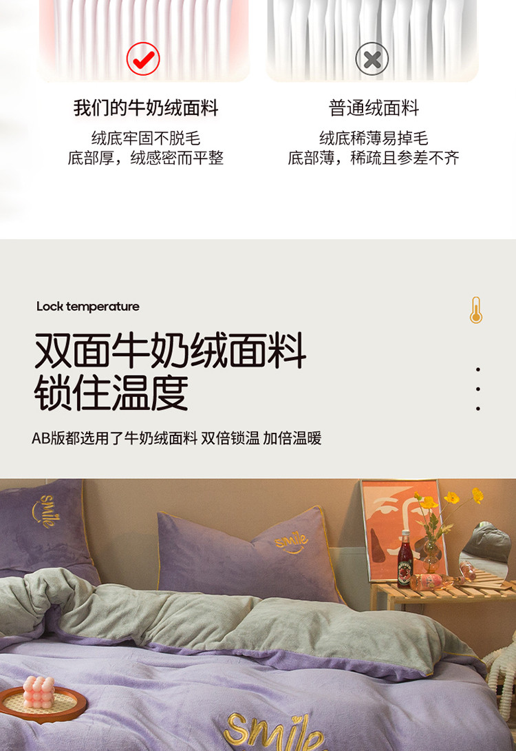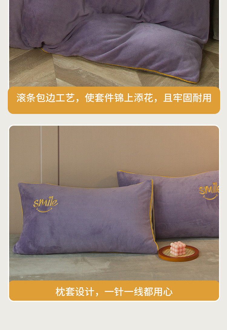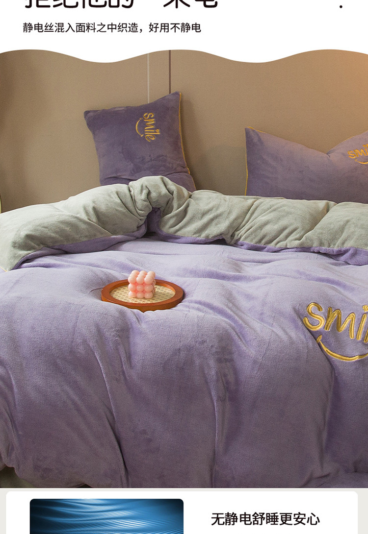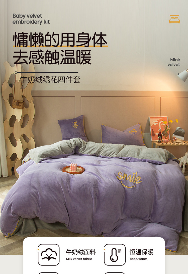 商品名称:凡客家居 2021秋冬新款工艺款牛奶绒四件套 微微一笑-紫
