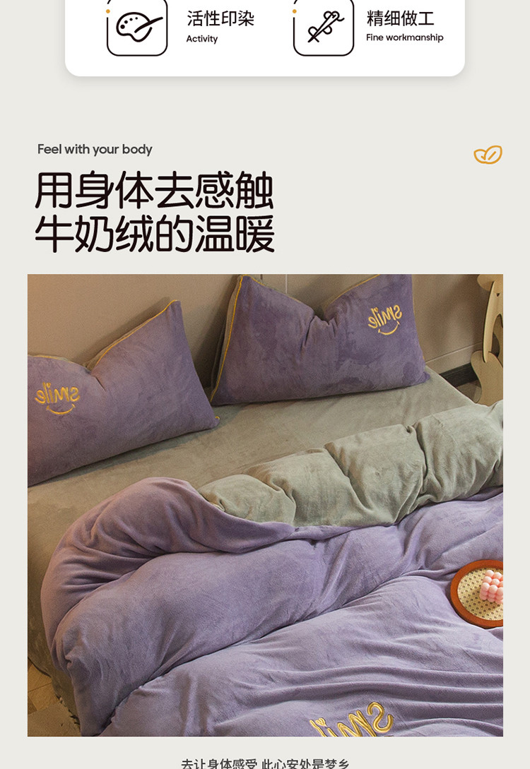 凡客家居 2021秋冬新款工艺款牛奶绒四件套 微微一笑-紫