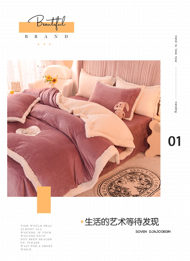 (总)艾米家居 2025秋冬新款牛奶绒泡泡印花花边四件套,豆沙条纹粉,蝴蝶花,太阳花