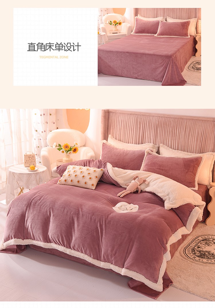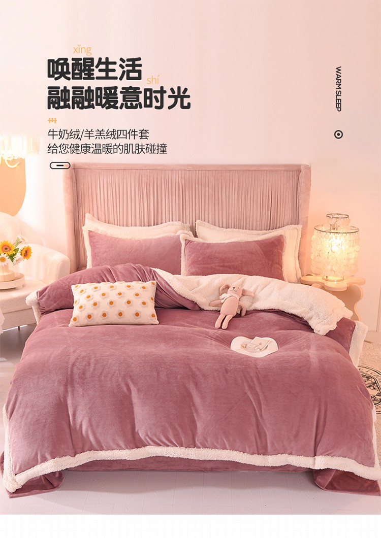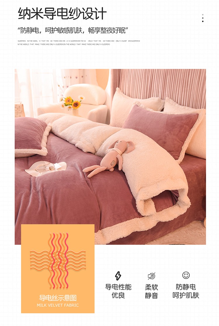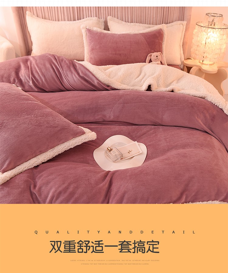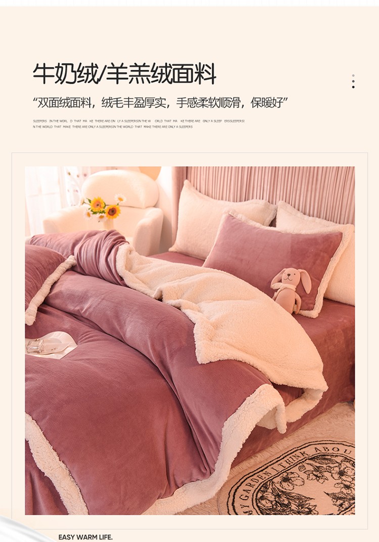 商品名称:艾米 2021新款牛奶绒羊羔绒双拼四件套 深蓝