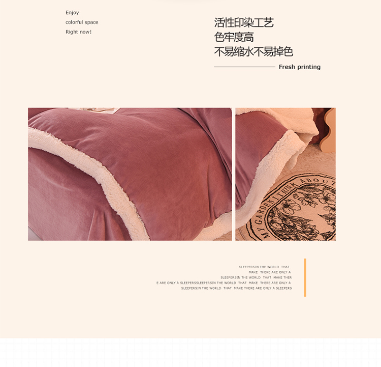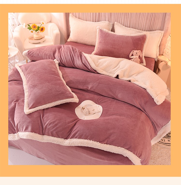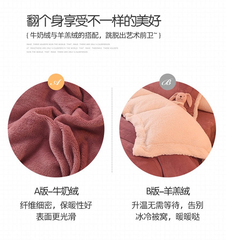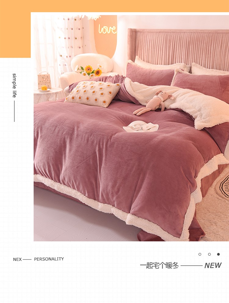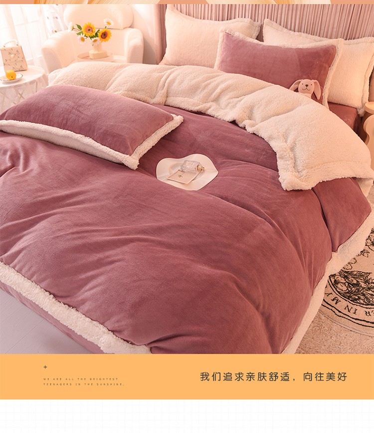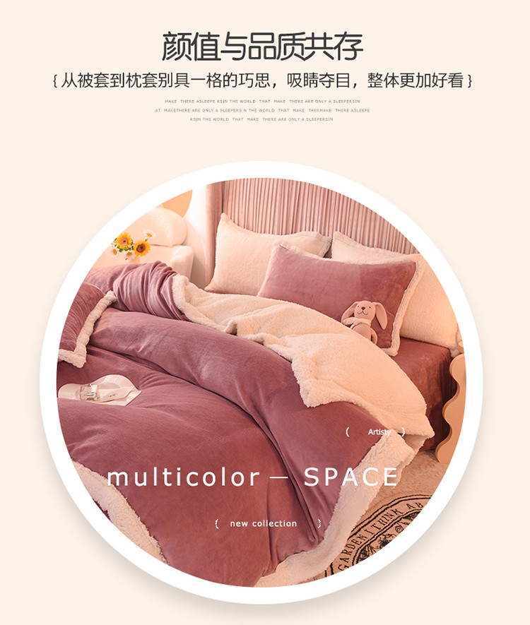 商品名称:艾米 2021新款牛奶绒羊羔绒双拼四件套 深蓝