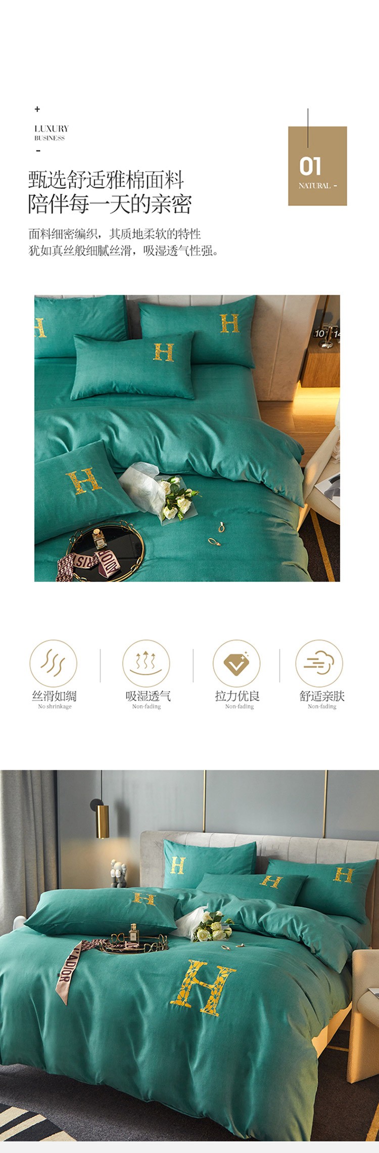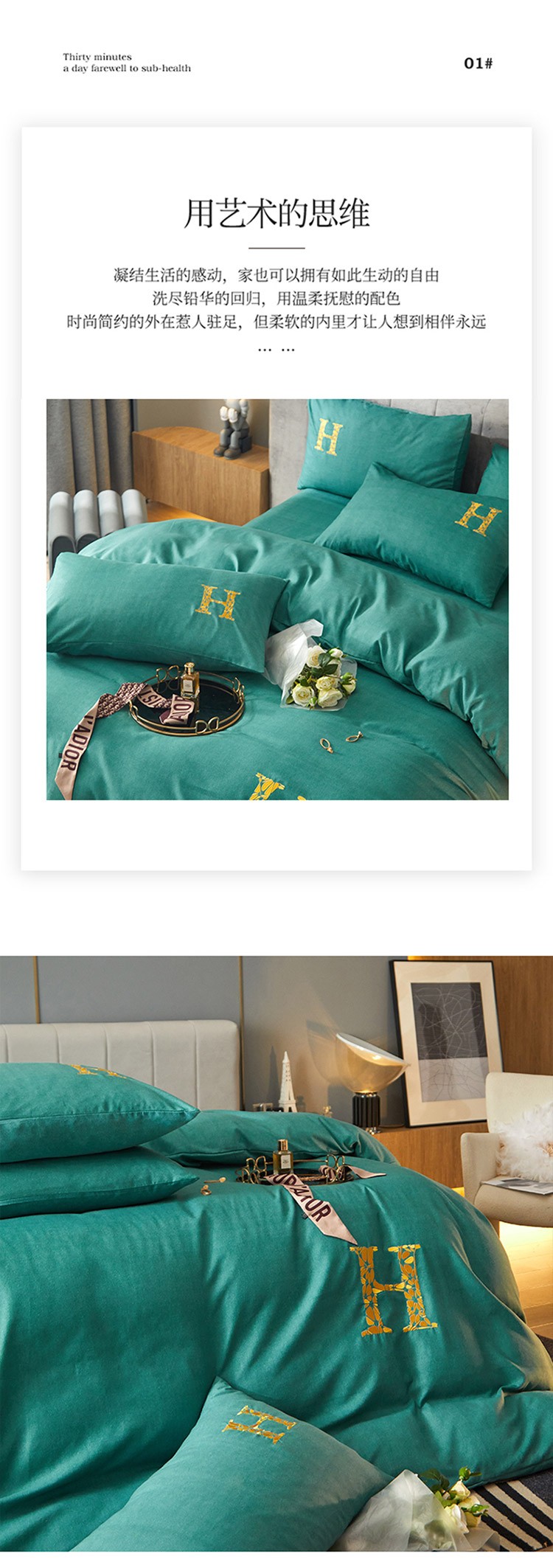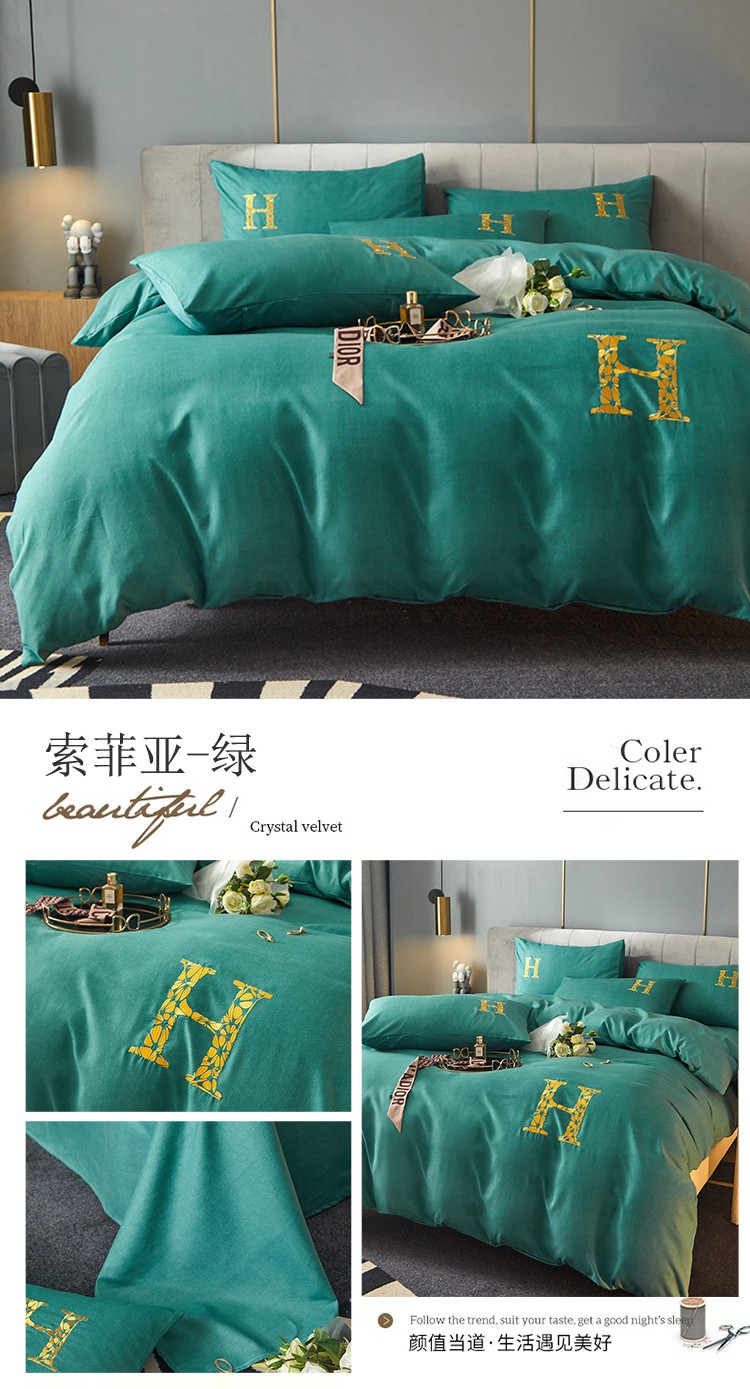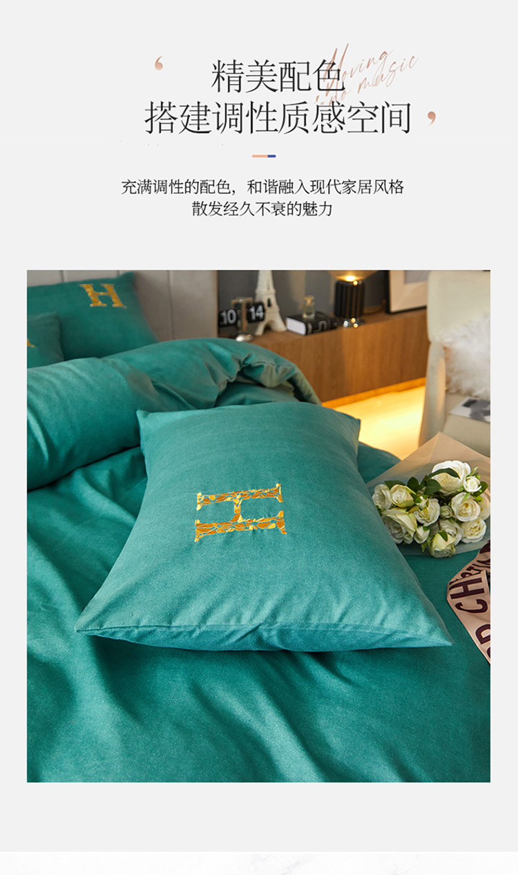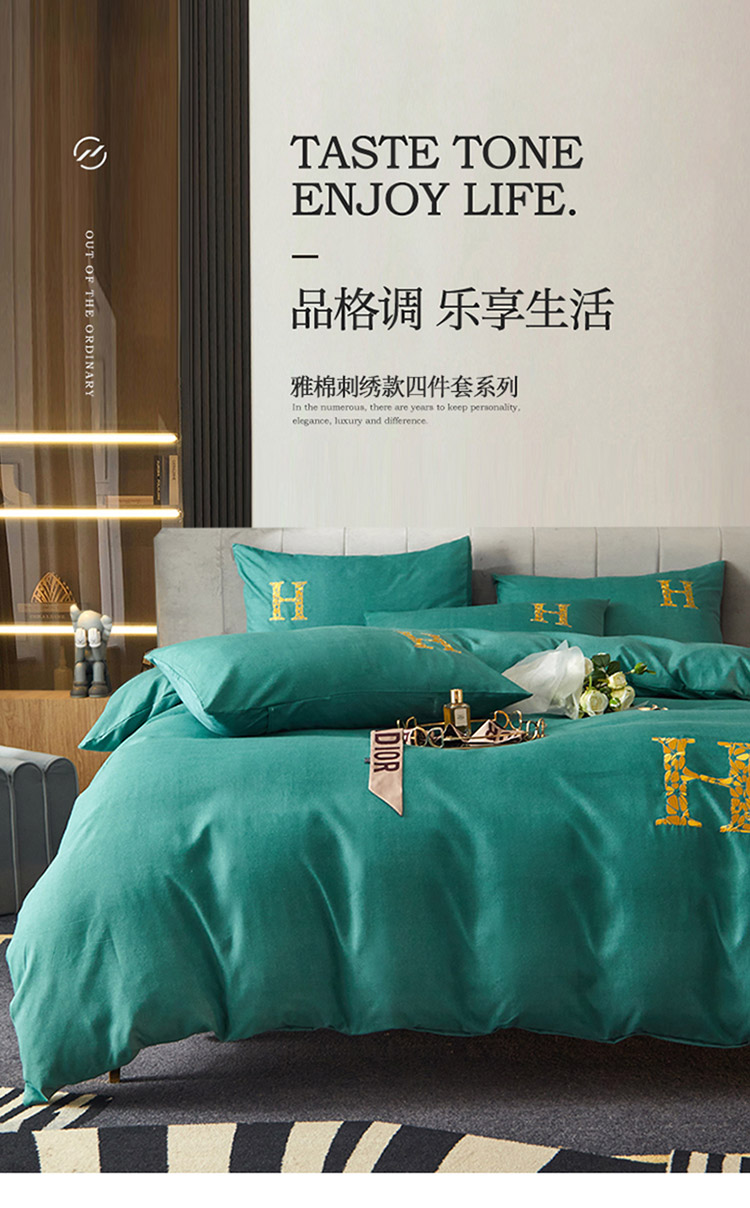 凡客2021秋冬新款雅棉刺绣四件套-索菲亚 索菲亚-绿