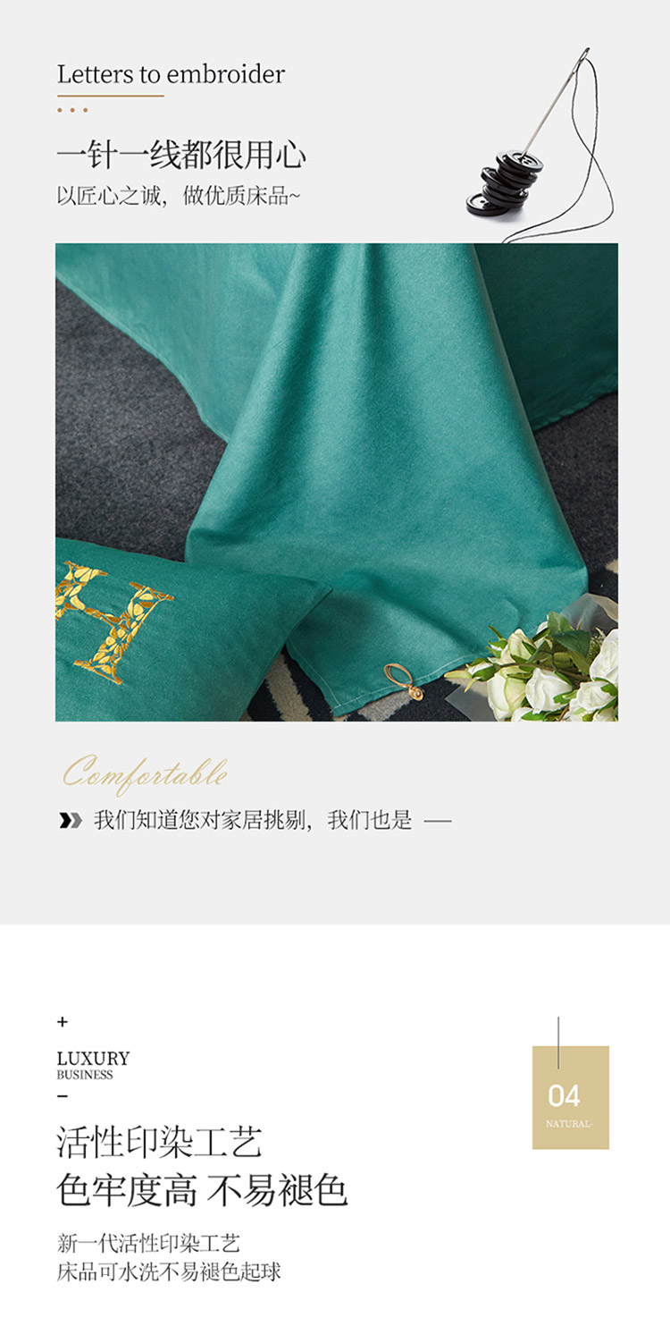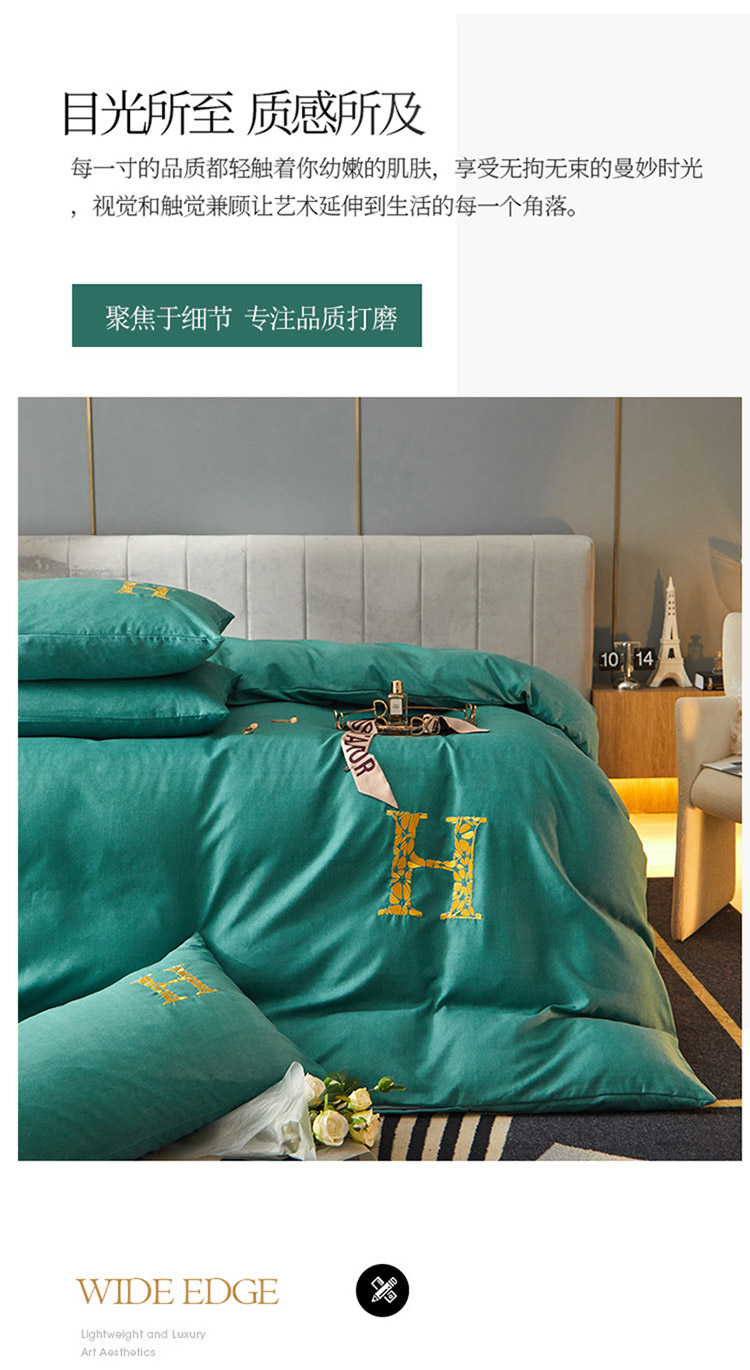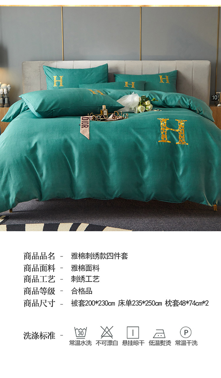 商品名称:凡客2021秋冬新款雅棉刺绣四件套-索菲亚 索菲亚-绿