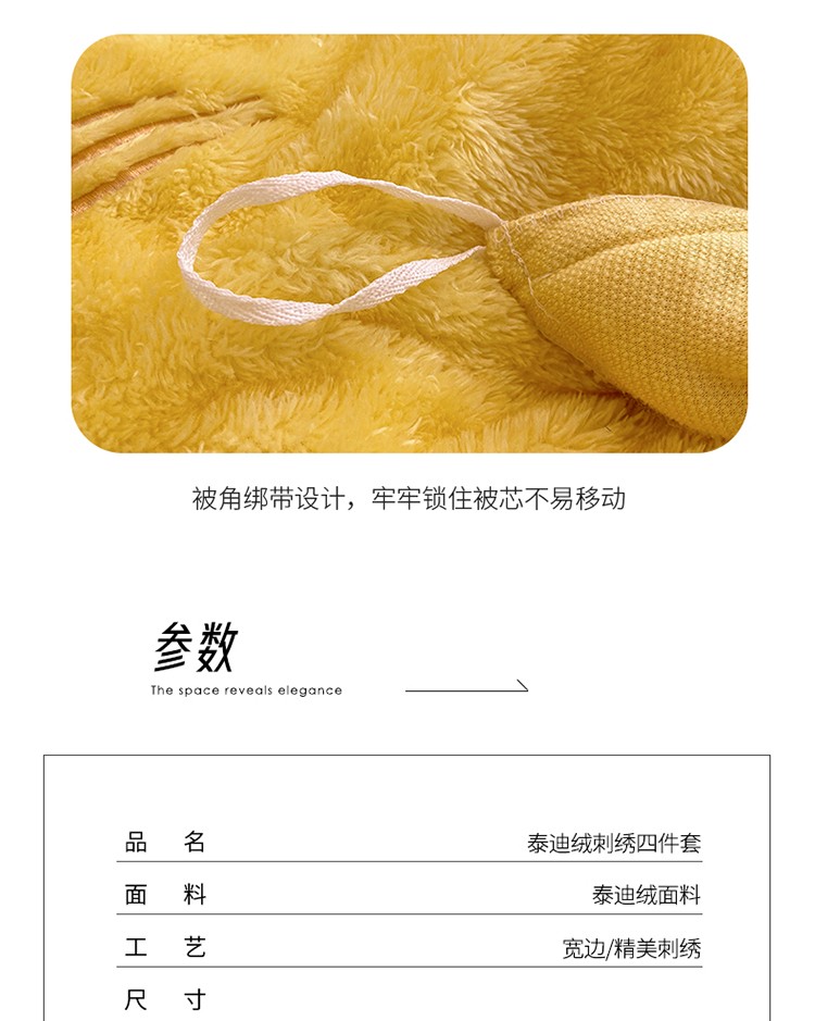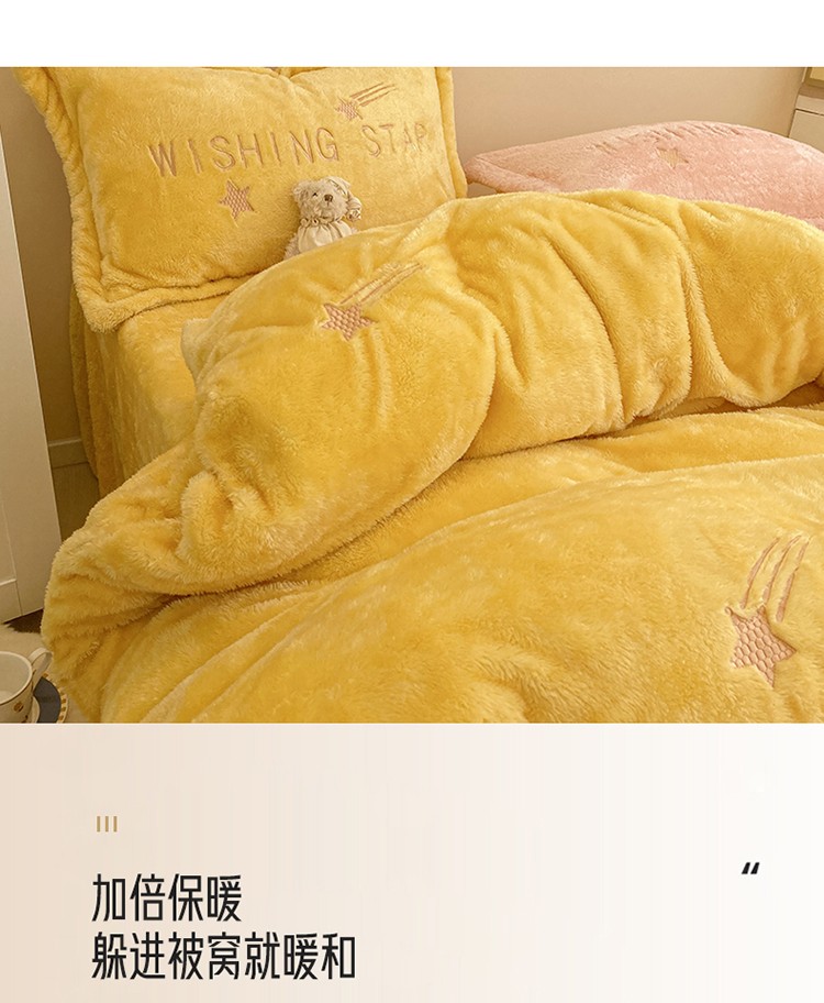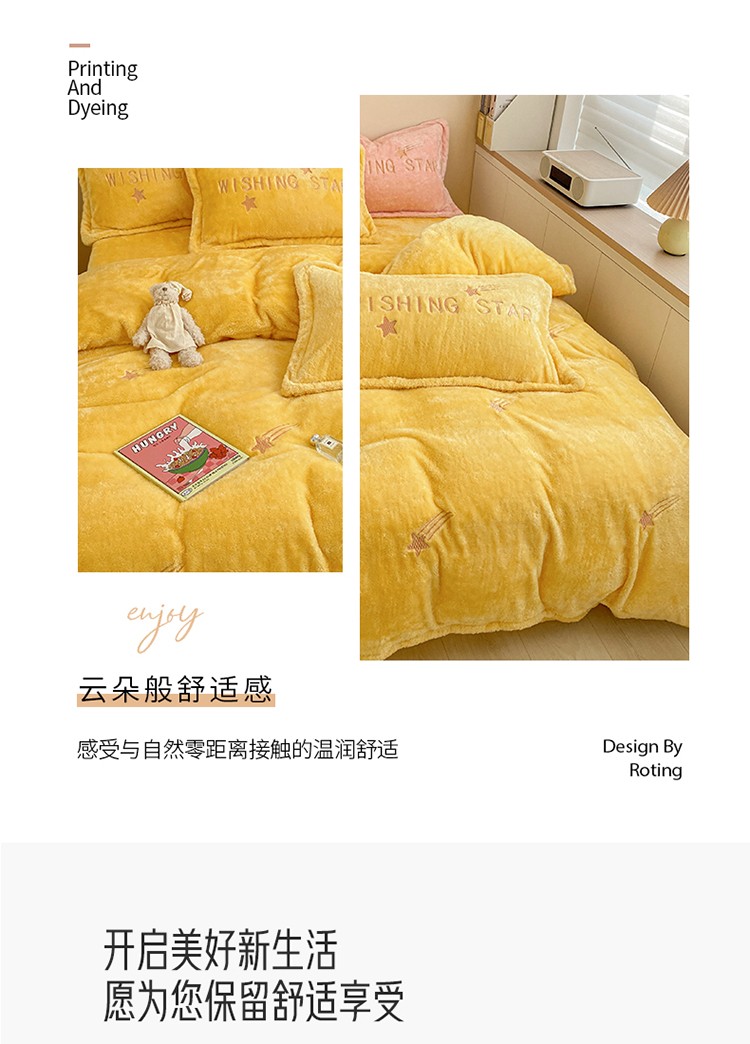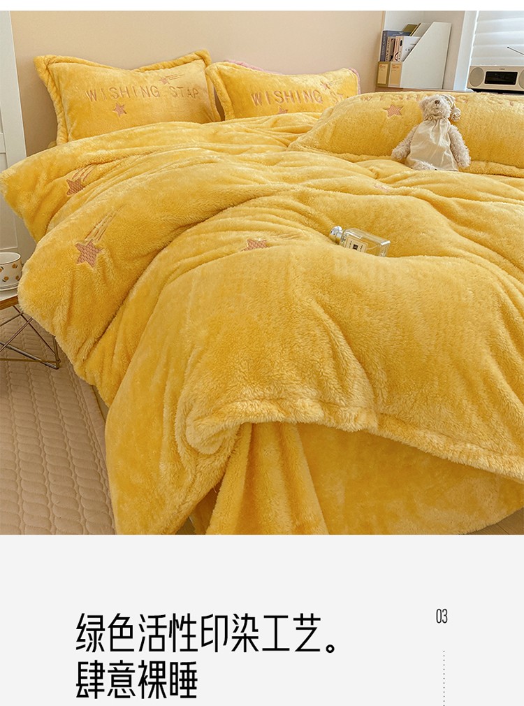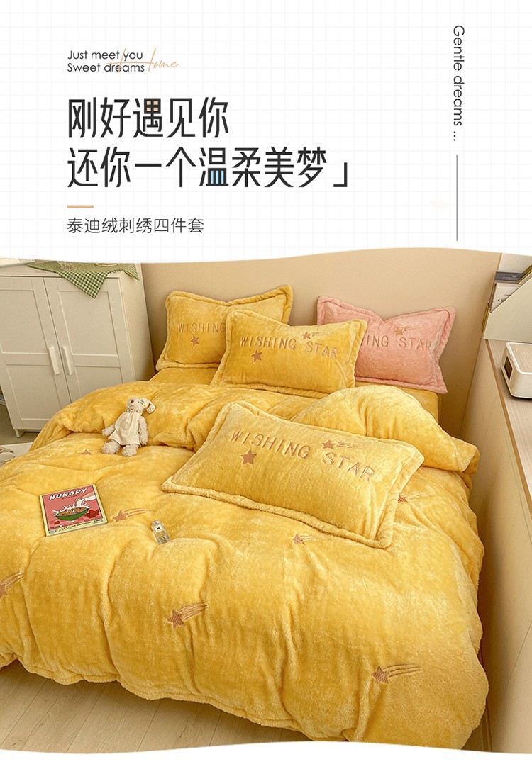 商品名称:雅居纺 2022新款泰迪绒绣花四件套拍摄风格2 许愿星-姜黄