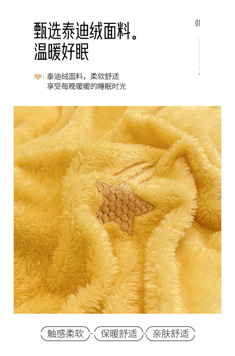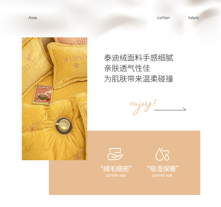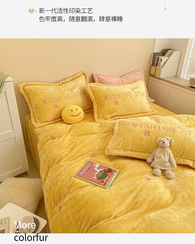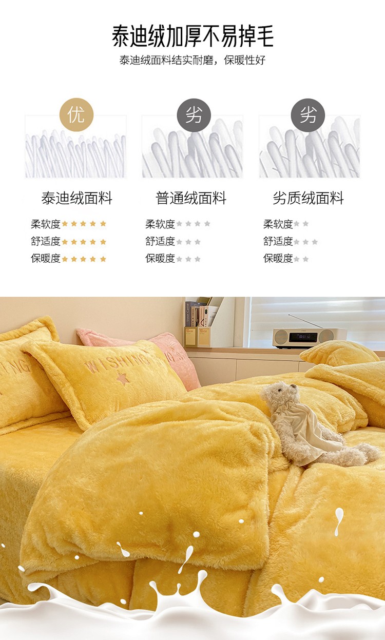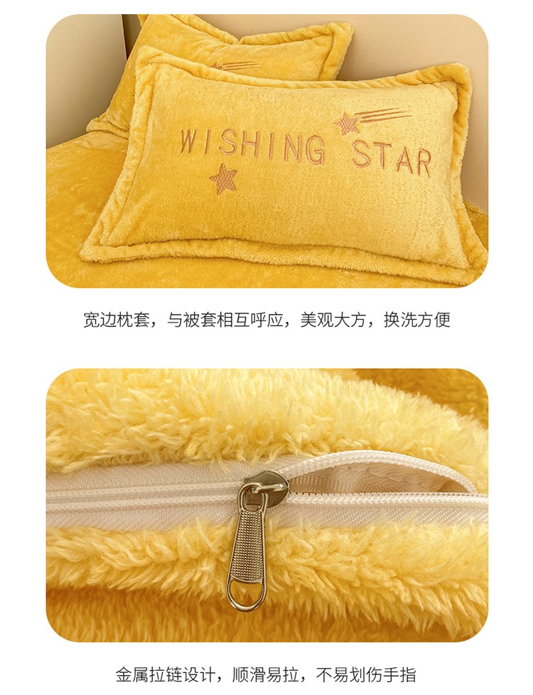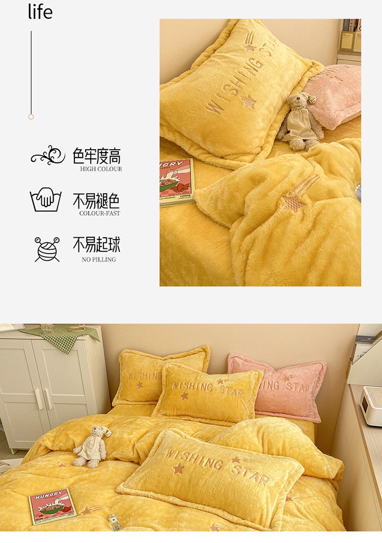 商品名称:雅居纺 2022新款泰迪绒绣花四件套拍摄风格2 许愿星-姜黄