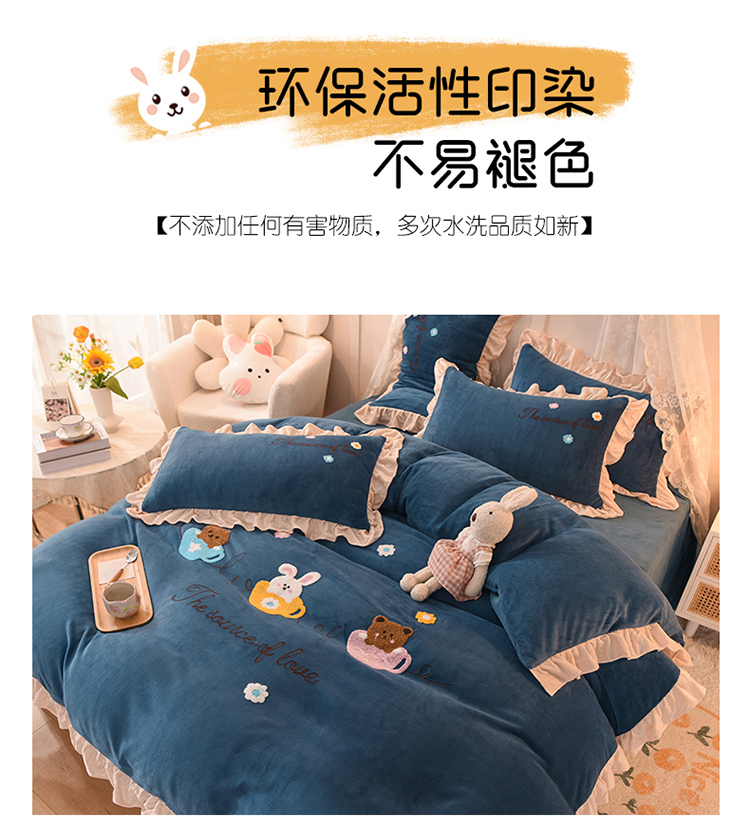 总大米家居2024款爱心兔兔绒双层牛奶绒花边雕花绒兔毛四件套多巴胺色系,多巴胺-绿,多巴胺-白,多巴胺-粉,多巴胺-黄,多巴胺-蓝