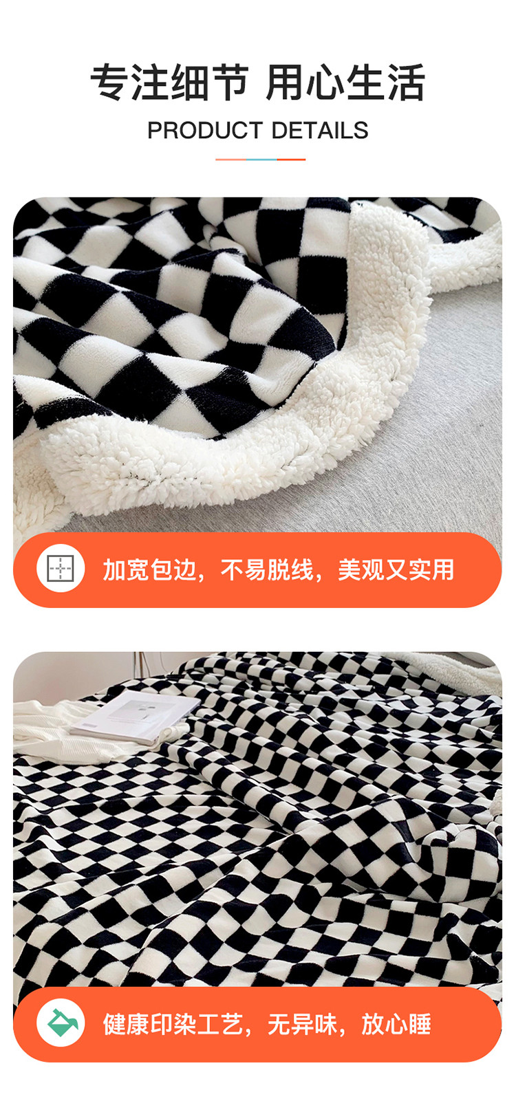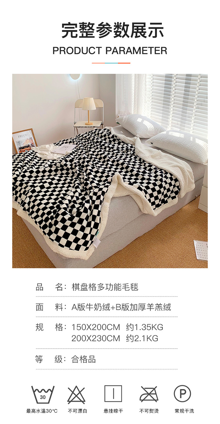 商品名称:网客家纺 2024新款棋盘格多功能毯 黑
