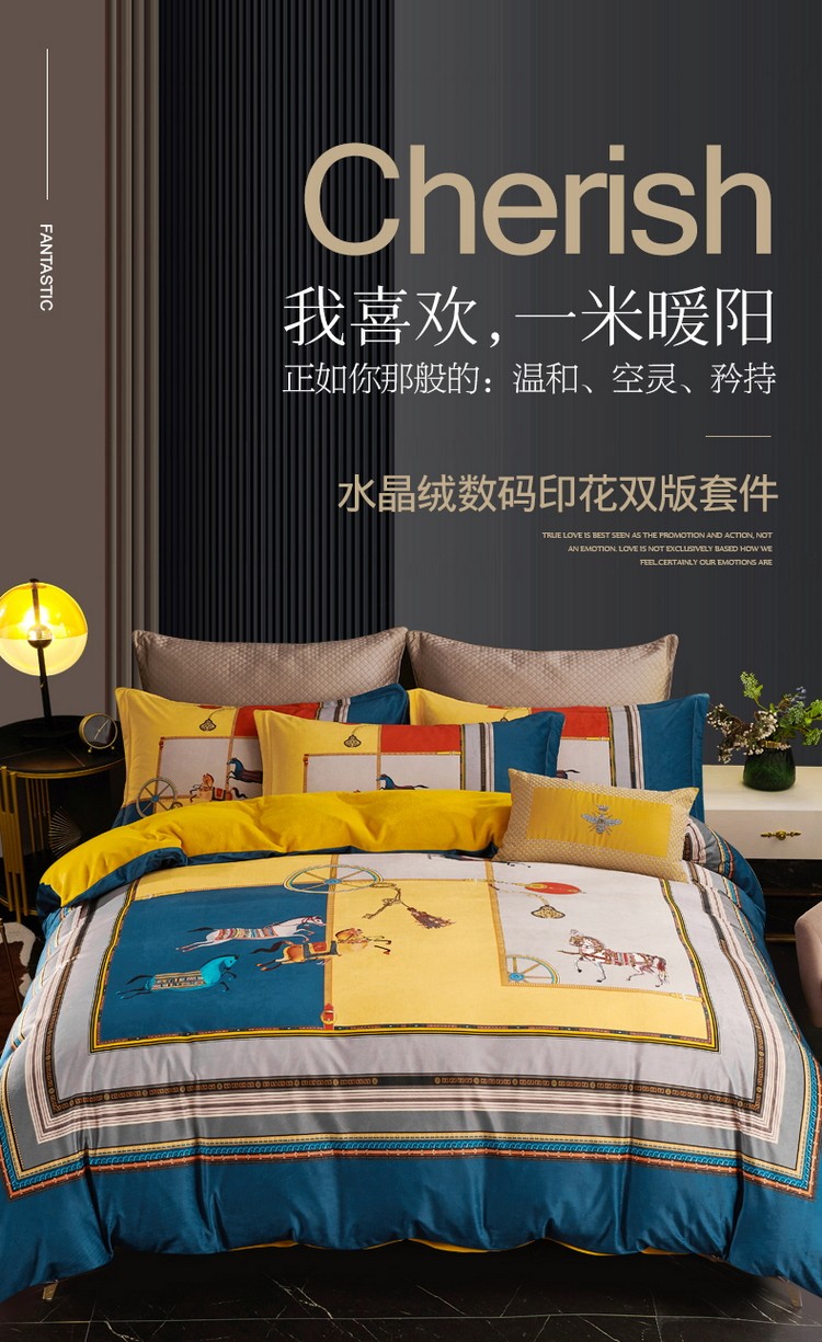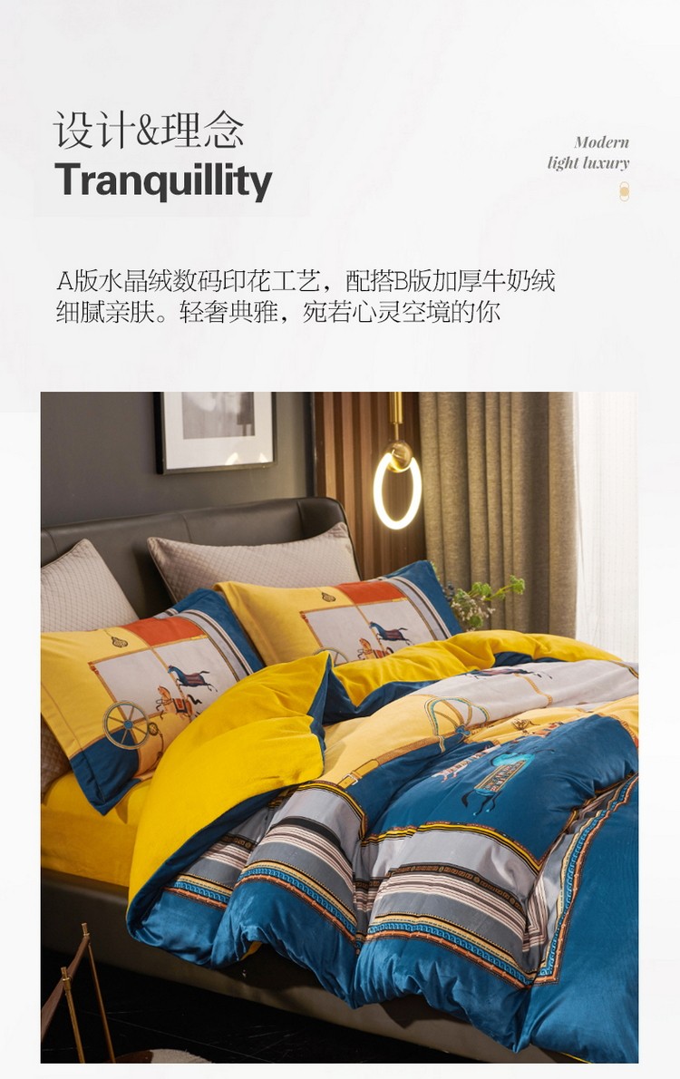 商品名称:ds生活馆2021新款奢系列数码印花水晶绒牛奶绒四件套 伯爵