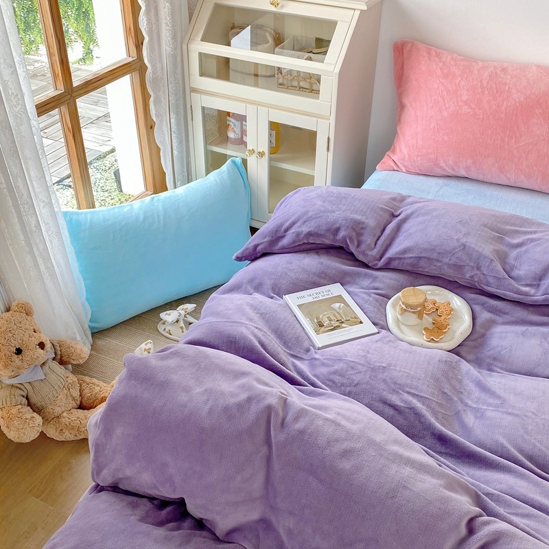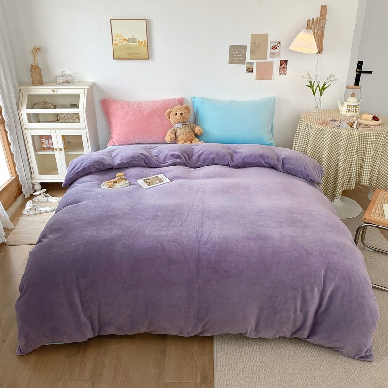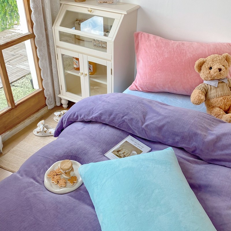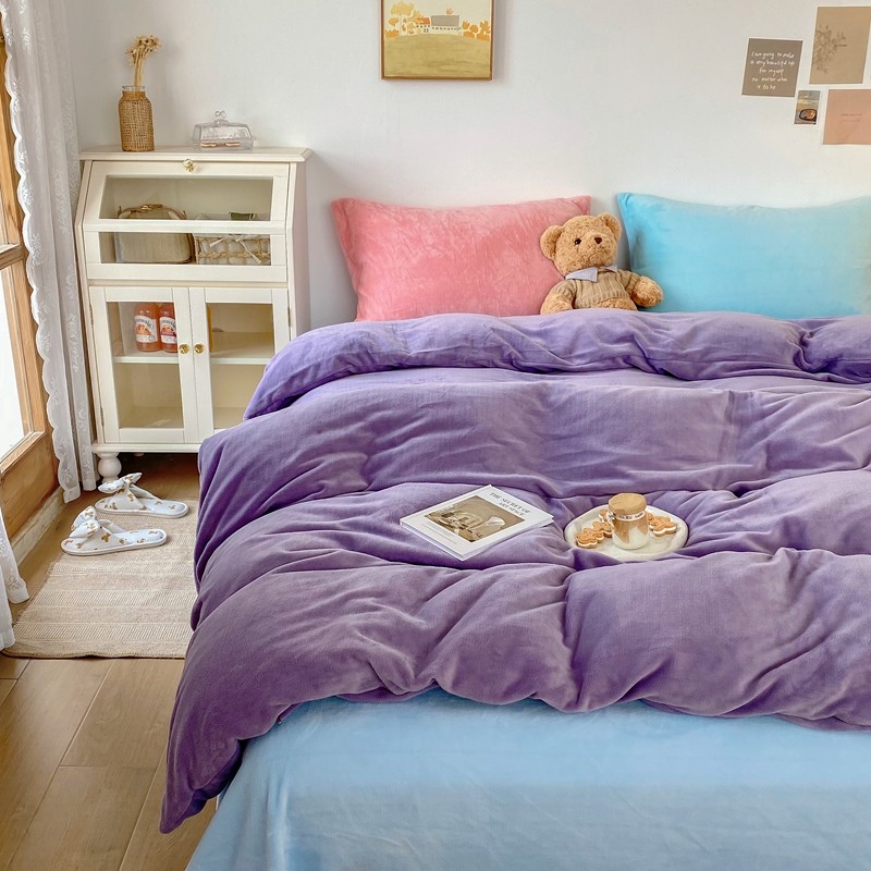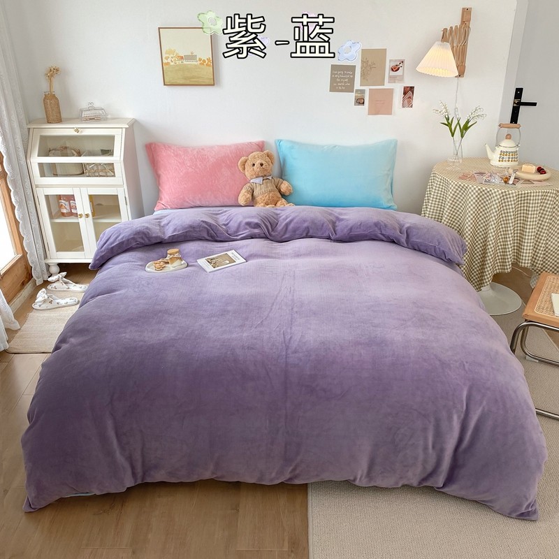 商品名称:星期八 2021新款马卡龙牛奶绒四件套 紫-蓝