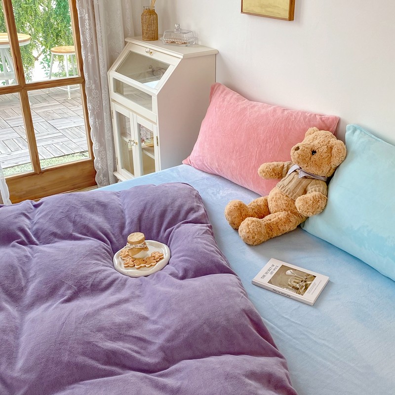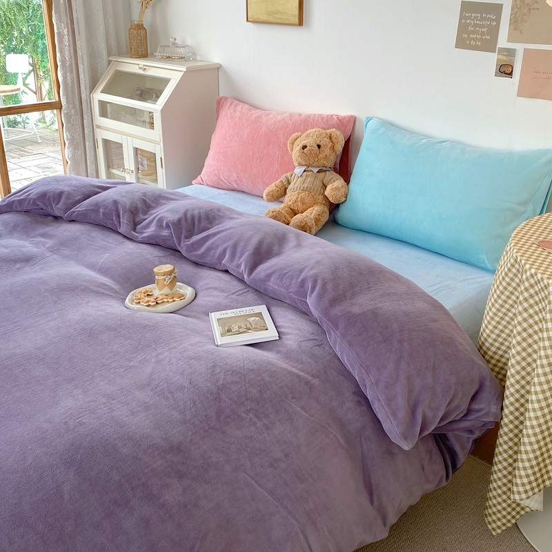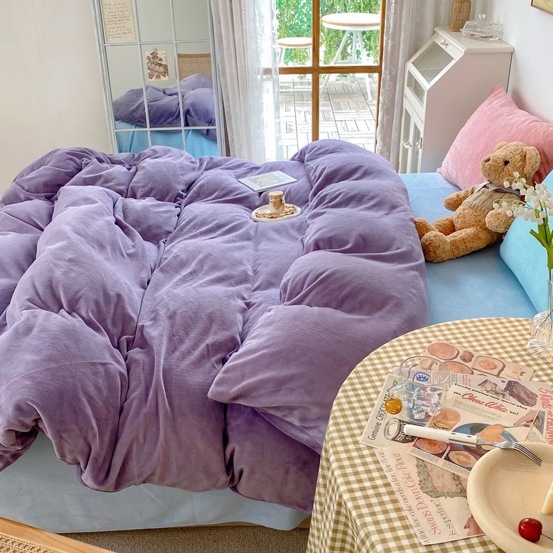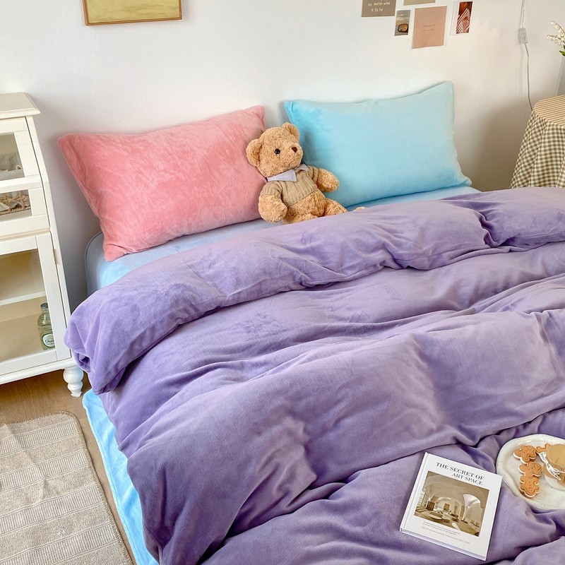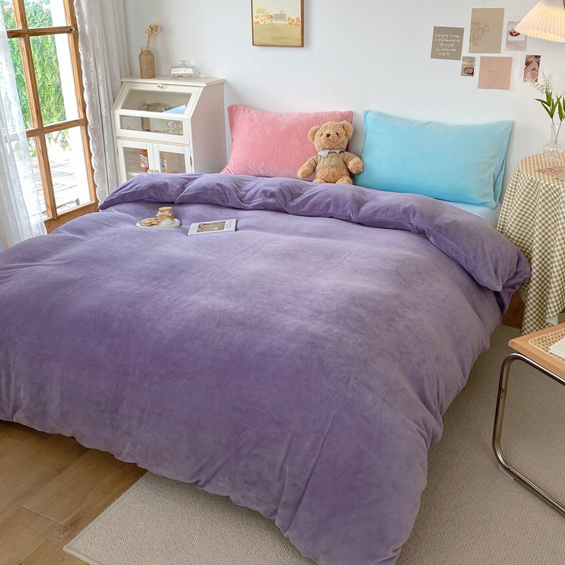 商品名称:星期八 2021新款马卡龙牛奶绒四件套 紫-蓝