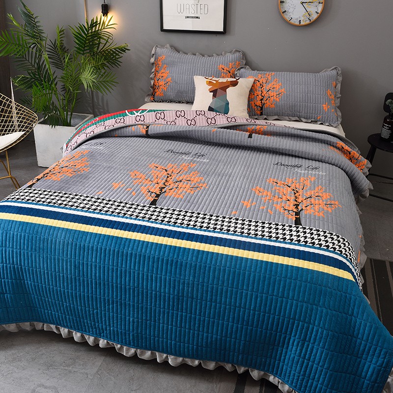 雨洋家纺 2025新款水晶绒床盖 灰小树