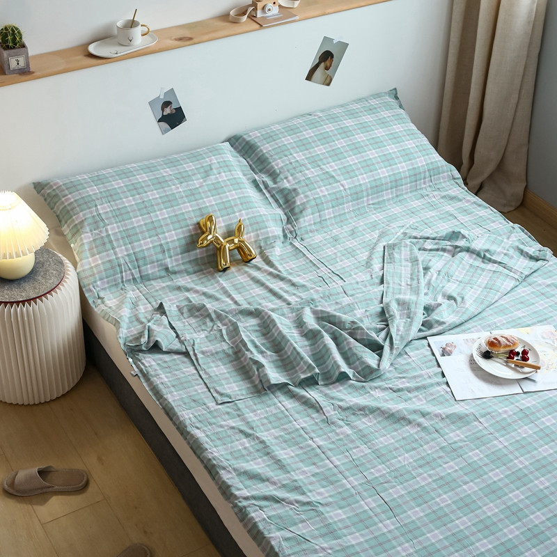 商品名称:安莱生活 2021新款全棉水洗棉色织睡袋 青柠格