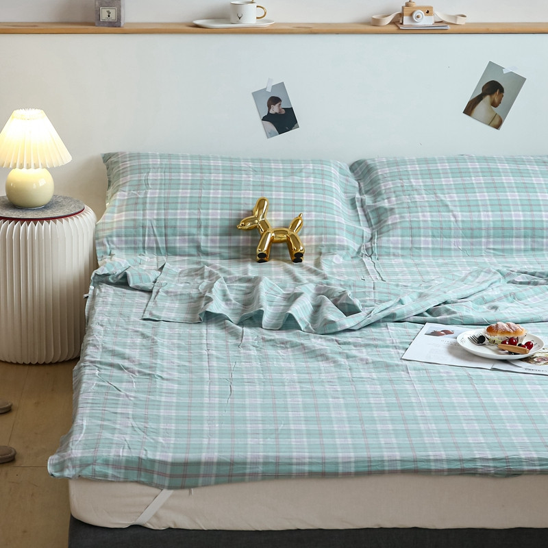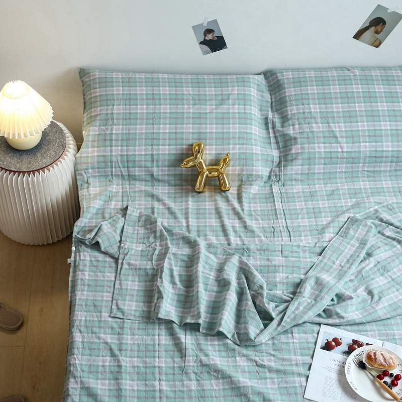 安莱生活 2021新款全棉水洗棉色织睡袋 青柠格