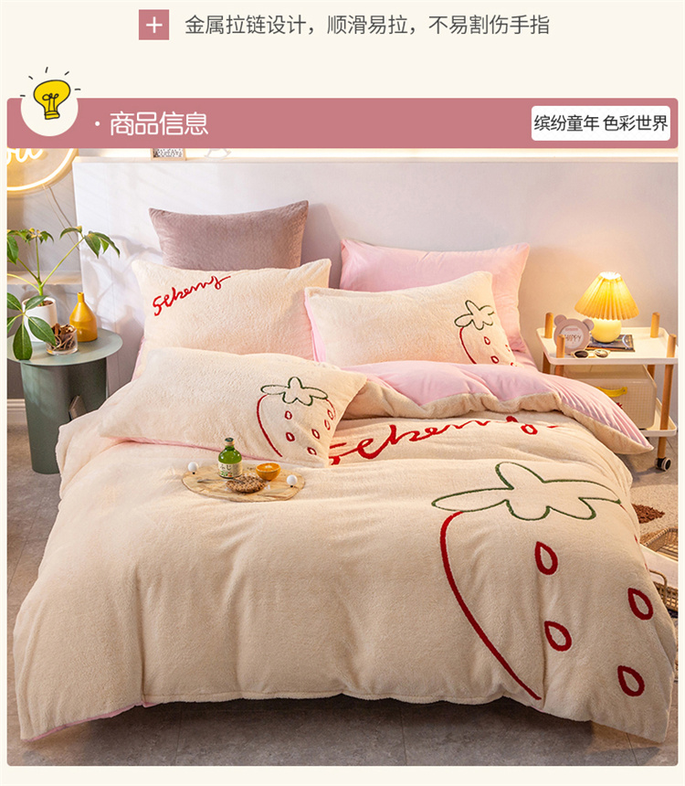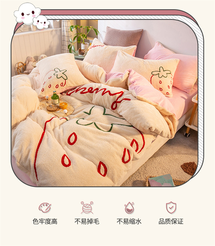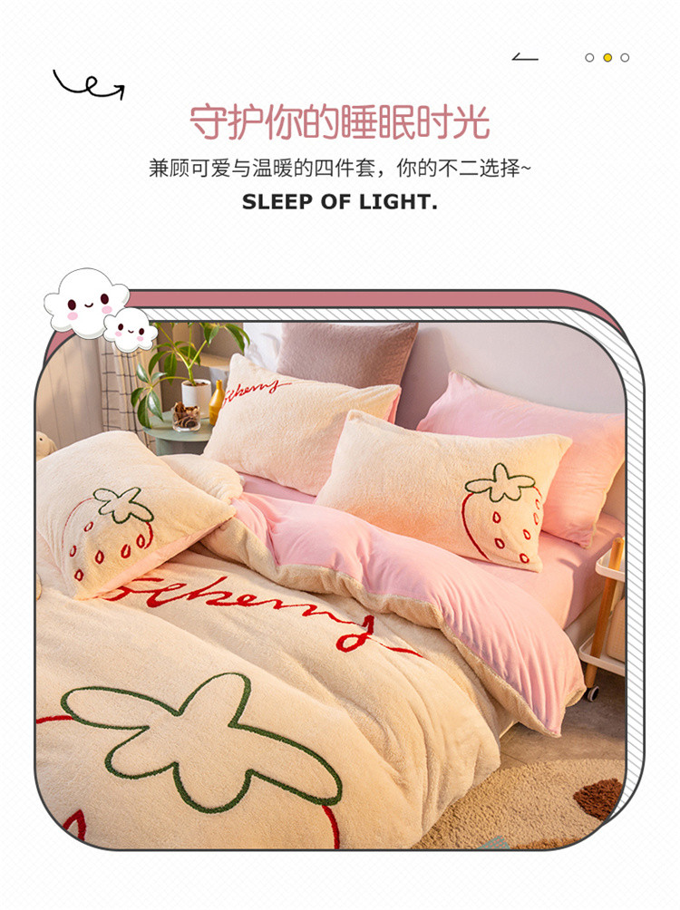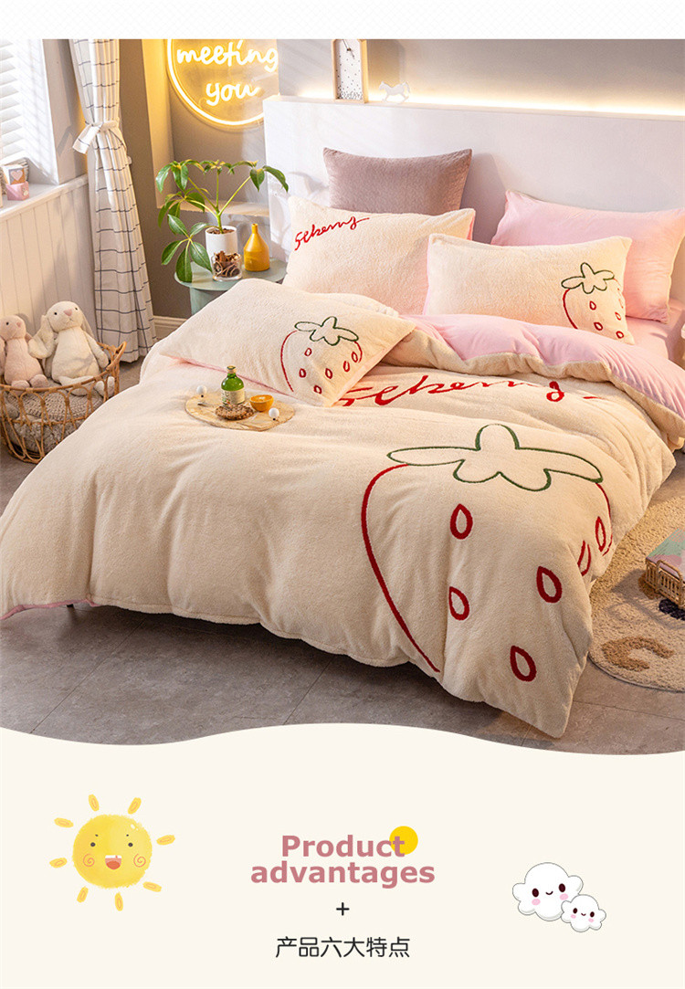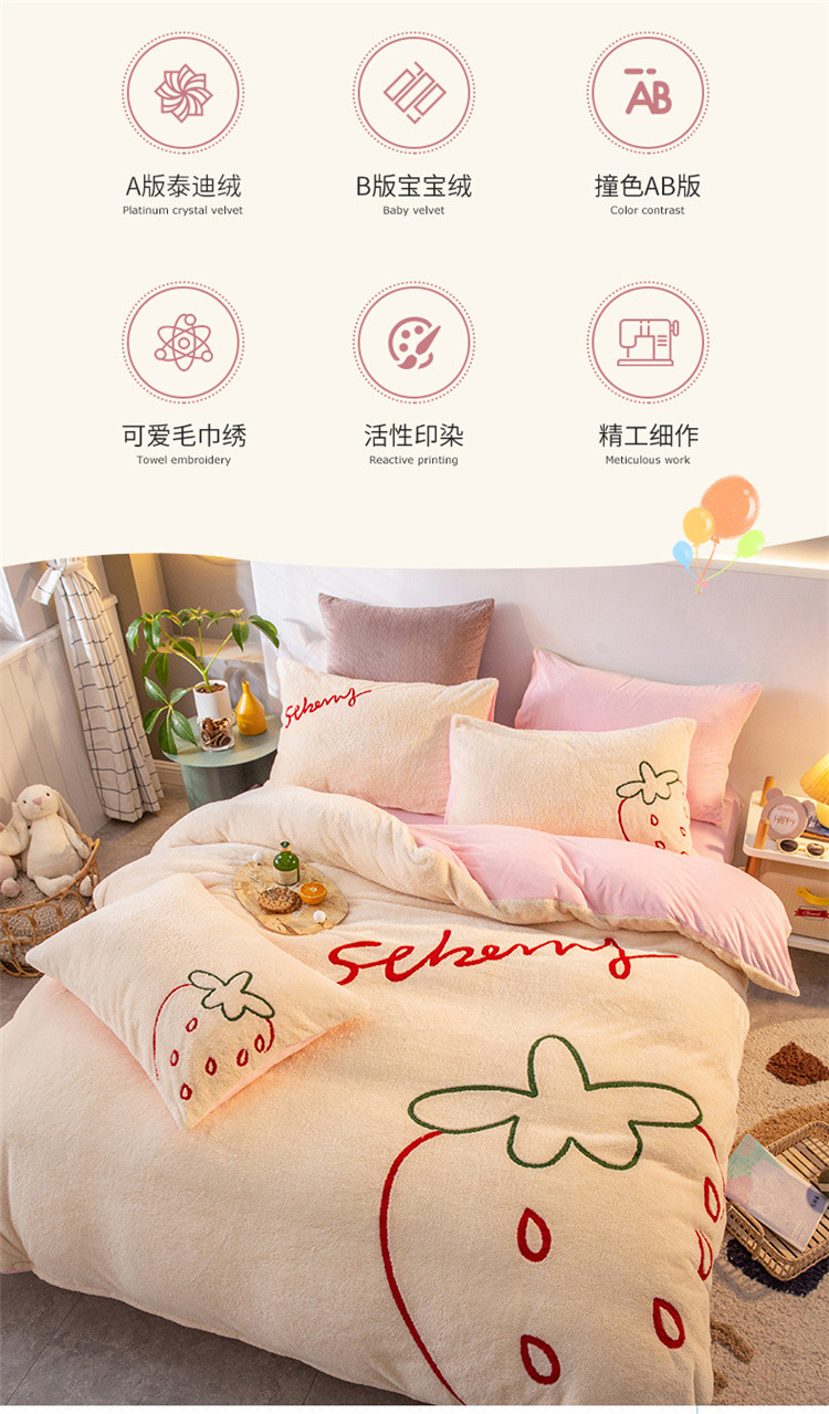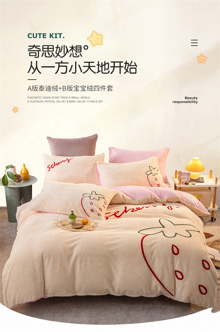 商品名称:澳梵2021新款韩国进口泰迪绒大版毛巾绣四件套 奶油草莓-白