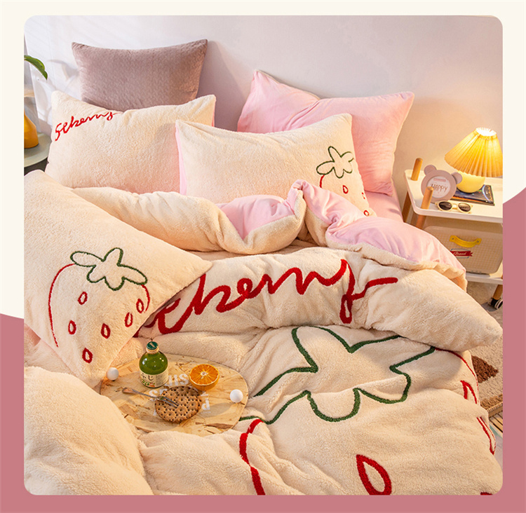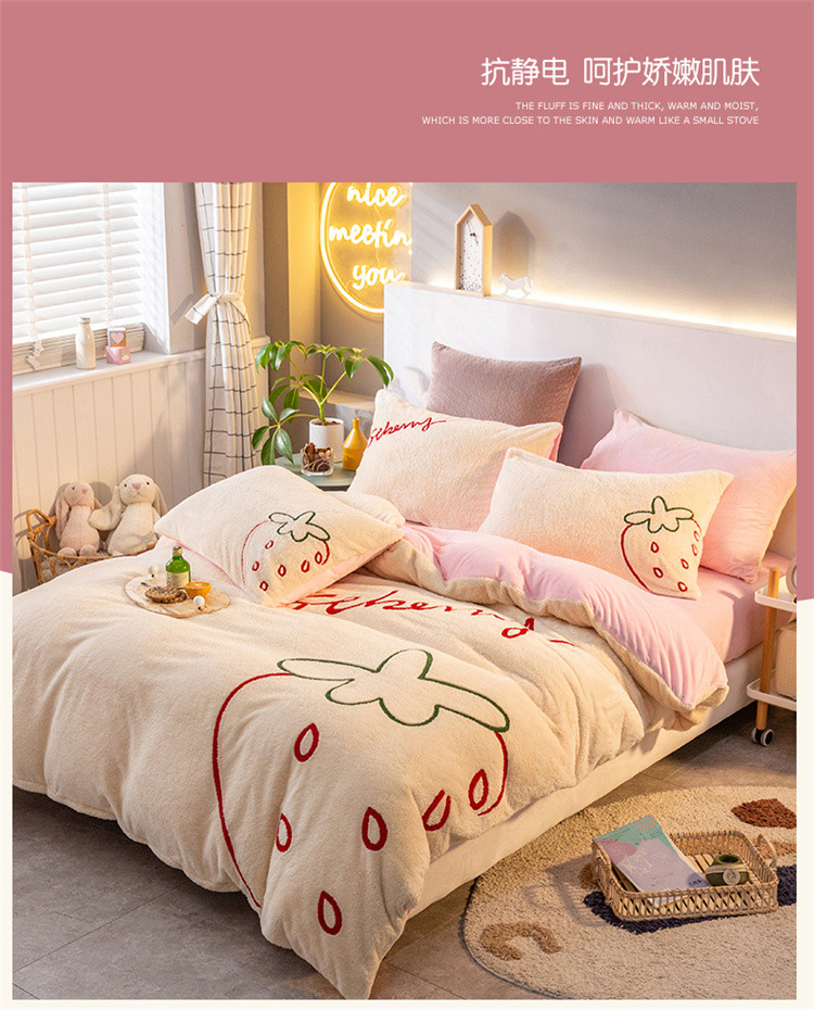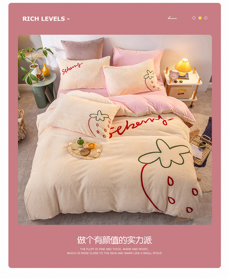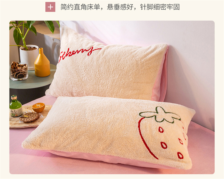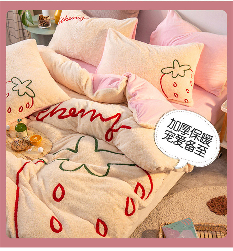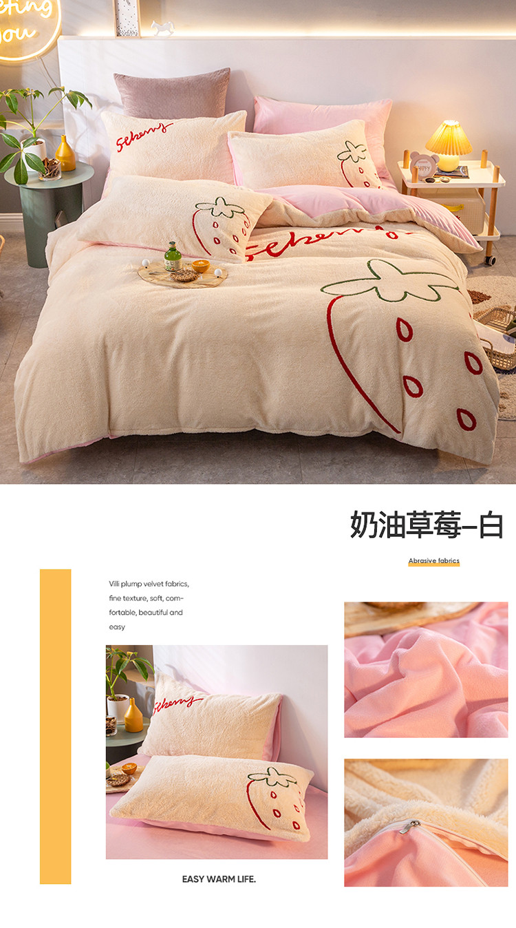 商品名称:澳梵2021新款韩国进口泰迪绒大版毛巾绣四件套 奶油草莓-白