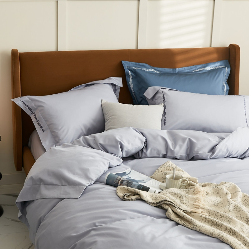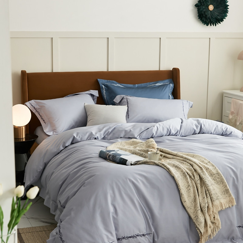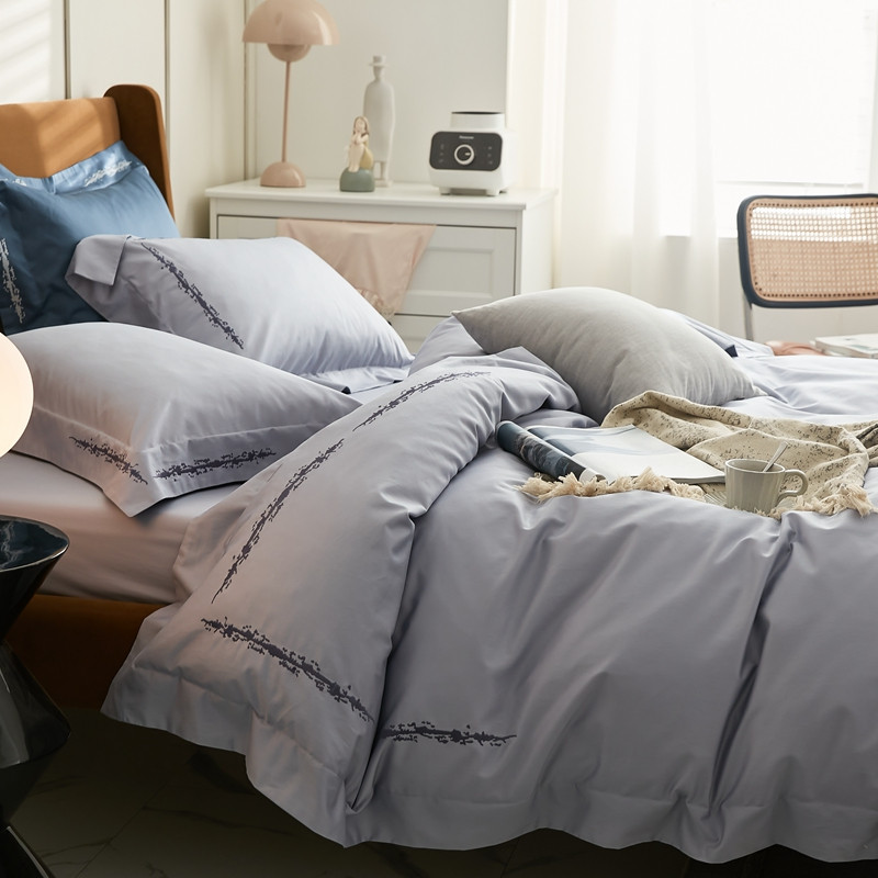 涞澳家纺 2021新款50支全棉绣花四件套 品凡-沥青灰