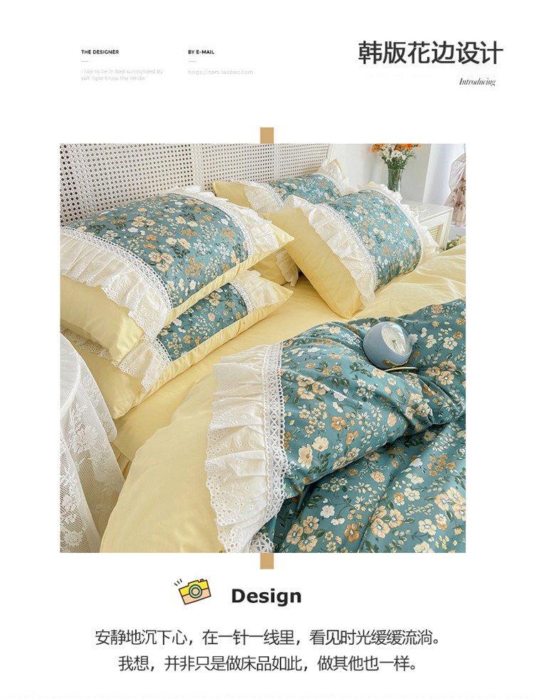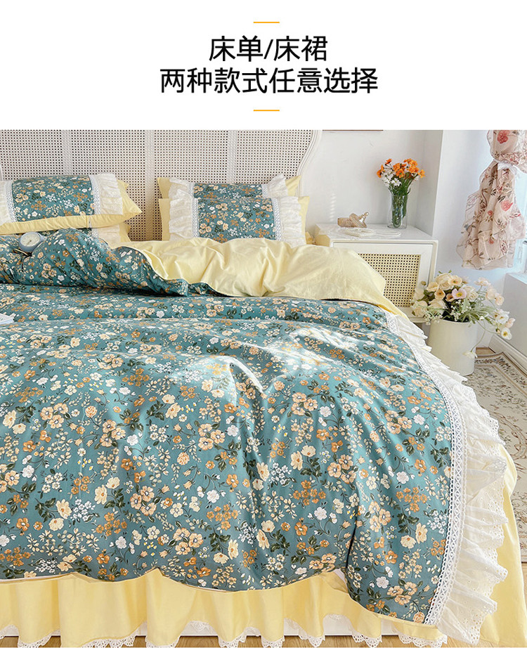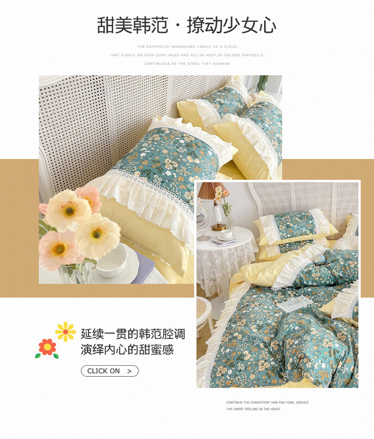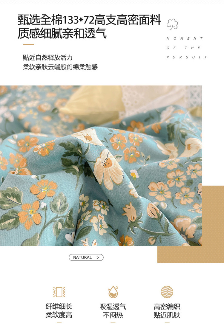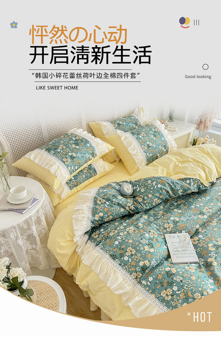 当前位置: 91家纺网 > 商品网购 > 床品套件 > 四件套 > 全棉普通四件套 > 菊上家纺 2022春款新款韩国小碎花四件套 罗莎