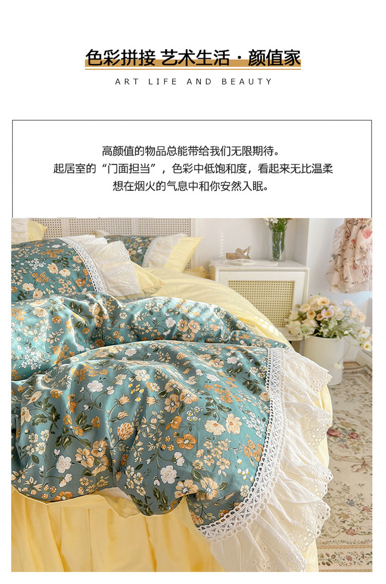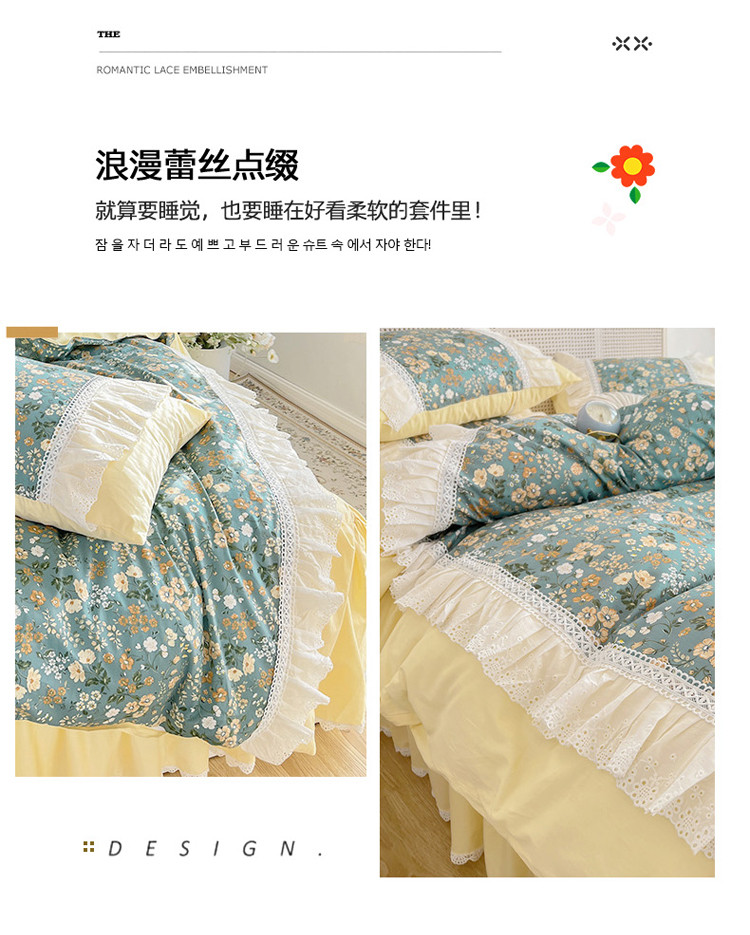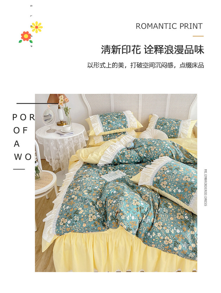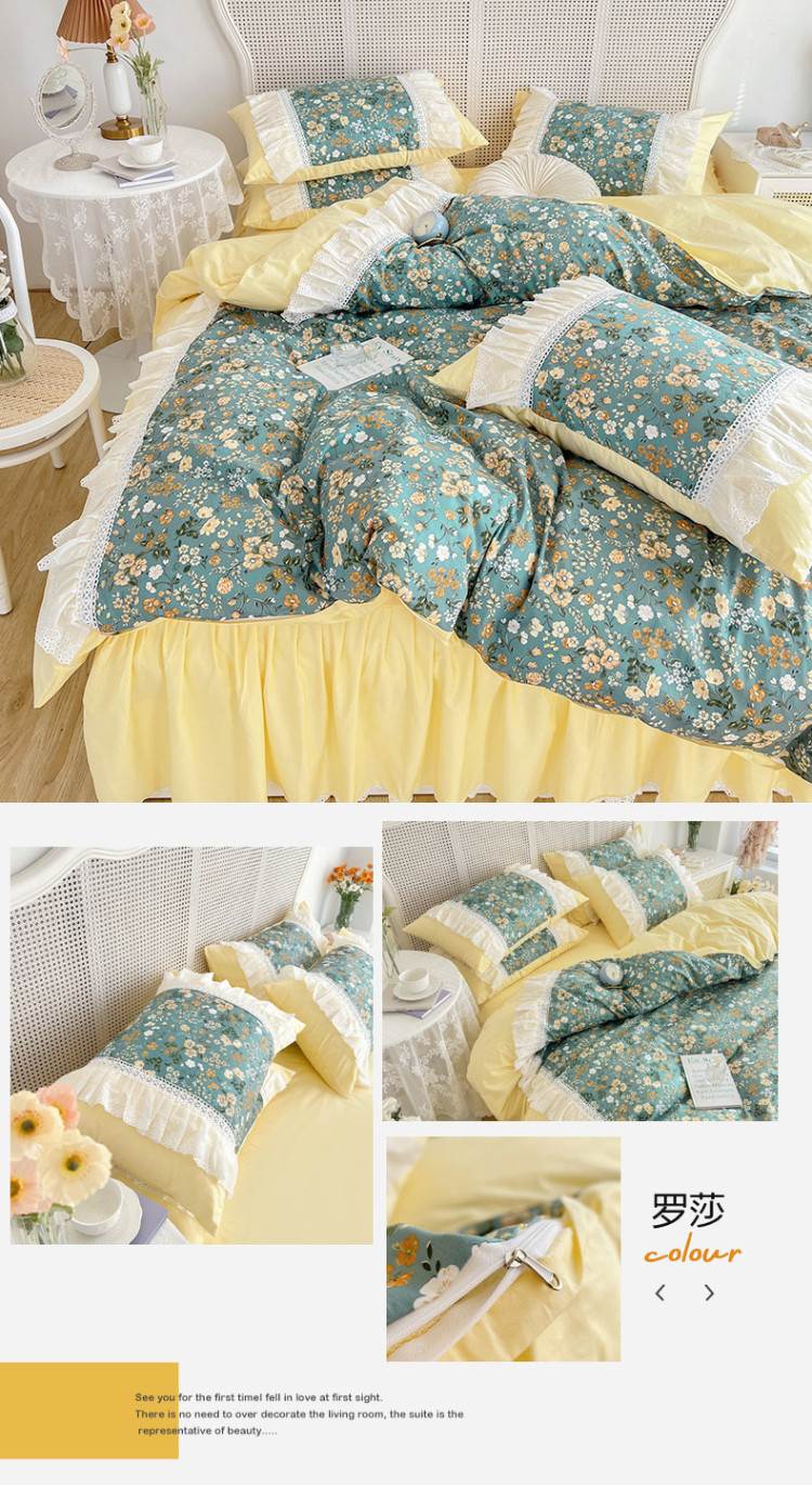 当前位置: 91家纺网 > 商品网购 > 床品套件 > 四件套 > 全棉普通四件套 > 菊上家纺 2022春款新款韩国小碎花四件套 罗莎