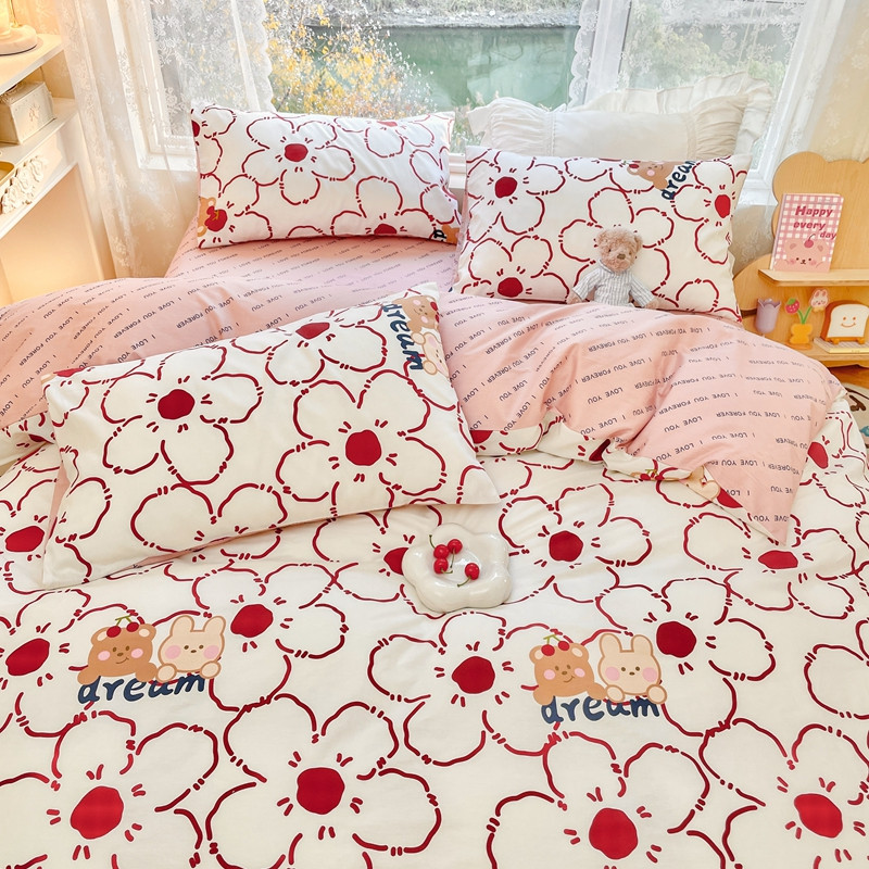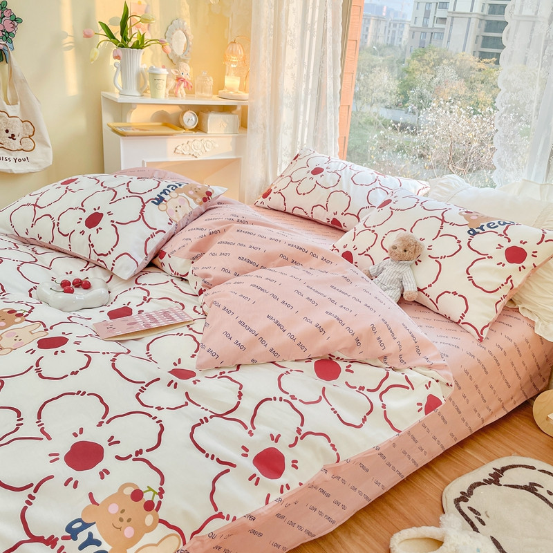 卡巴伦家纺 2023新款春夏全棉花漾年华四件套2 别样红